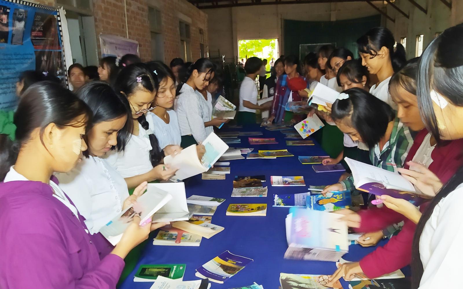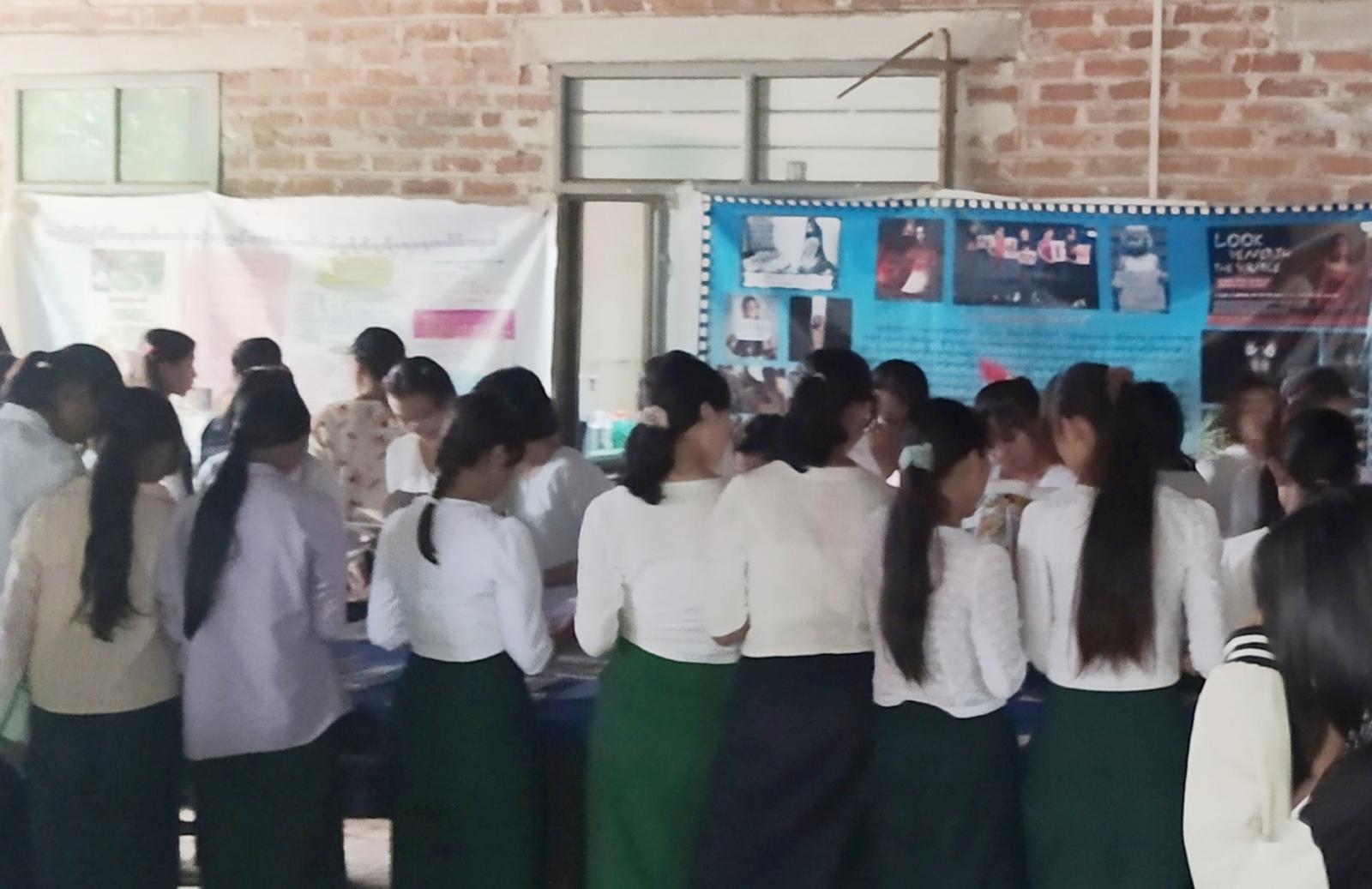 ကျောင်းသား၊ ကျောင်းသူ လူငယ်လူရွယ်များ အသိပညာဗဟုသုတများတိုးပွားလာပြီး ဗလငါးတန်ဖွံ့ဖြိုးလာစေရန်၊ အနာဂတ်အတွက် သားကောင်းရတနာများ ပေါ်ထွန်းလာစေရန်ရည်ရွယ်၍ အသိပညာပေး သုတ၊ ရသ စာအုပ်စာစောင်များပြပွဲနှင့် လူကုန်ကူးမှုအန္တရာယ်တိုက်ဖျက်ရေး၊ အပြည်ပြည်ဆိုင်ရာမူးယစ်ဆေးဝါးအလွဲသုံးမှုနှင့် တရားမဝင်ရောင်းဝယ်မှုတိုက်ဖျက်ရေးနှင့် ကလေးအလုပ်သမားပပျောက်ရေး အသိပညာပေးနံရံကပ်ဗီနိုင်းပိုစတာများပြသဆောင်ရွက်ခဲ့ကြရာ ကျောင်းသားကျောင်းသူများက စိတ်ပါဝင်စားစွာဖြင့် ကြည့်ရှုလေ့လာခဲ့ကြောင်း သိရသည်။