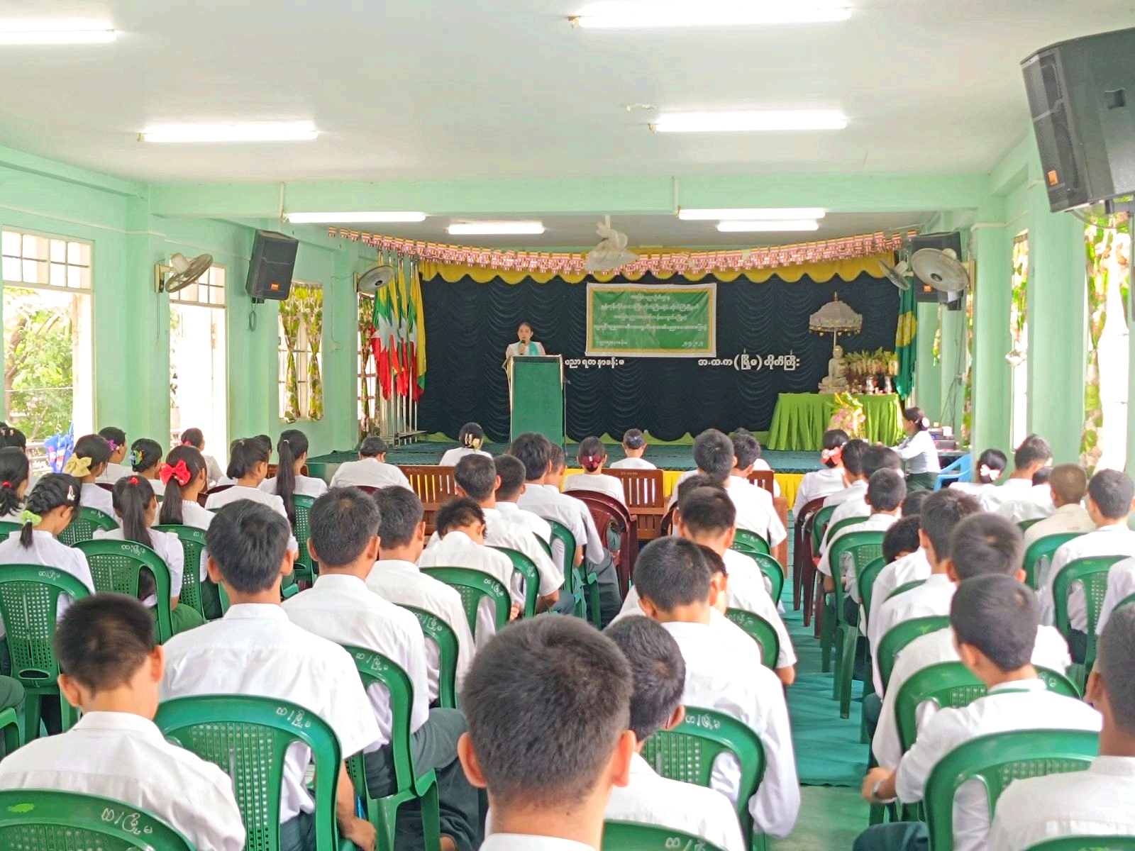 ရှေးဦးစွာ ကျောင်းအုပ်ဆရာမကြီး ဒေါ်ခင်ဌေးဝင်းက အဖွင့်အမှာစကားပြောကြားပြီး မြို့နယ်လူကုန်ကူးမှု တားဆီးကာကွယ်ရေးအဖွဲ့ဝင် မြို့နယ်ပြန်ကြားရေးနှင့် ပြည်သူ့ဆက်ဆံရေးဦးစီးဌာန ဦးစီးအရာရှိ ဒေါ်စန်းကလျာခိုင်က လူကုန်ကူးခြင်း၊ လူမှောင်ခိုခြင်း၊ ခေါင်းပုံဖြတ်ခြင်းနှင့် တရားမဝင်ရွှေ့ပြောင်းသွားလာမှုဆိုင်ရာ အကြောင်းအရာများကို ဟောပြောခဲ့သည်။ ဆက်လက်၍ အထက်တန်းပြ ဆရာမ ဒေါ်ယုကလျာအောင်က လူကုန်ကူးမှုတားဆီးကာကွယ်ရေးဆိုင်ရာများကို အသိပညာပေးဟောပြောပြီး တာဝန်ခံကျောင်းအုပ်ဆရာမကြီး ဒေါ်စန်းစန်းမြင့်က ကျေးဇူးတင်စကား ပြန်လည်ပြောကြားခဲ့သည်။