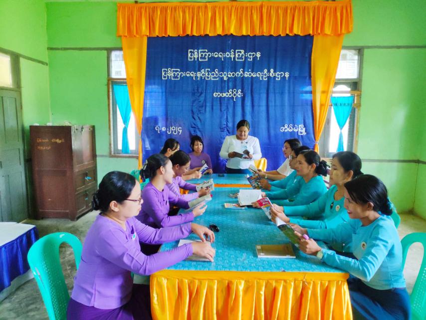 ဧရာဝတီတိုင်းဒေသကြီး၊ မြောင်းမြခရိုင်၊ အိမ်မဲမြို့နယ် ပြန်ကြားရေးနှင့်ပြည်သူ့ဆက်ဆံရေးဦးစီးဌာန လူထုအခြေပြုဗဟိုဌာန (Community Centre) ခန်းမတွင် Women Club အဖွဲ့ မှ စာရေးဆရာမ ခင်စောတင့်၏ “အမေဆောက်ခဲ့သောရဲတိုက်ကြီးများ ” စာအုပ် ဖြင့်စာဖတ်ဝိုင်းကို ယနေ့မွန်းလွဲ(၁)နာရီတွင် ကျင်းပသည်။