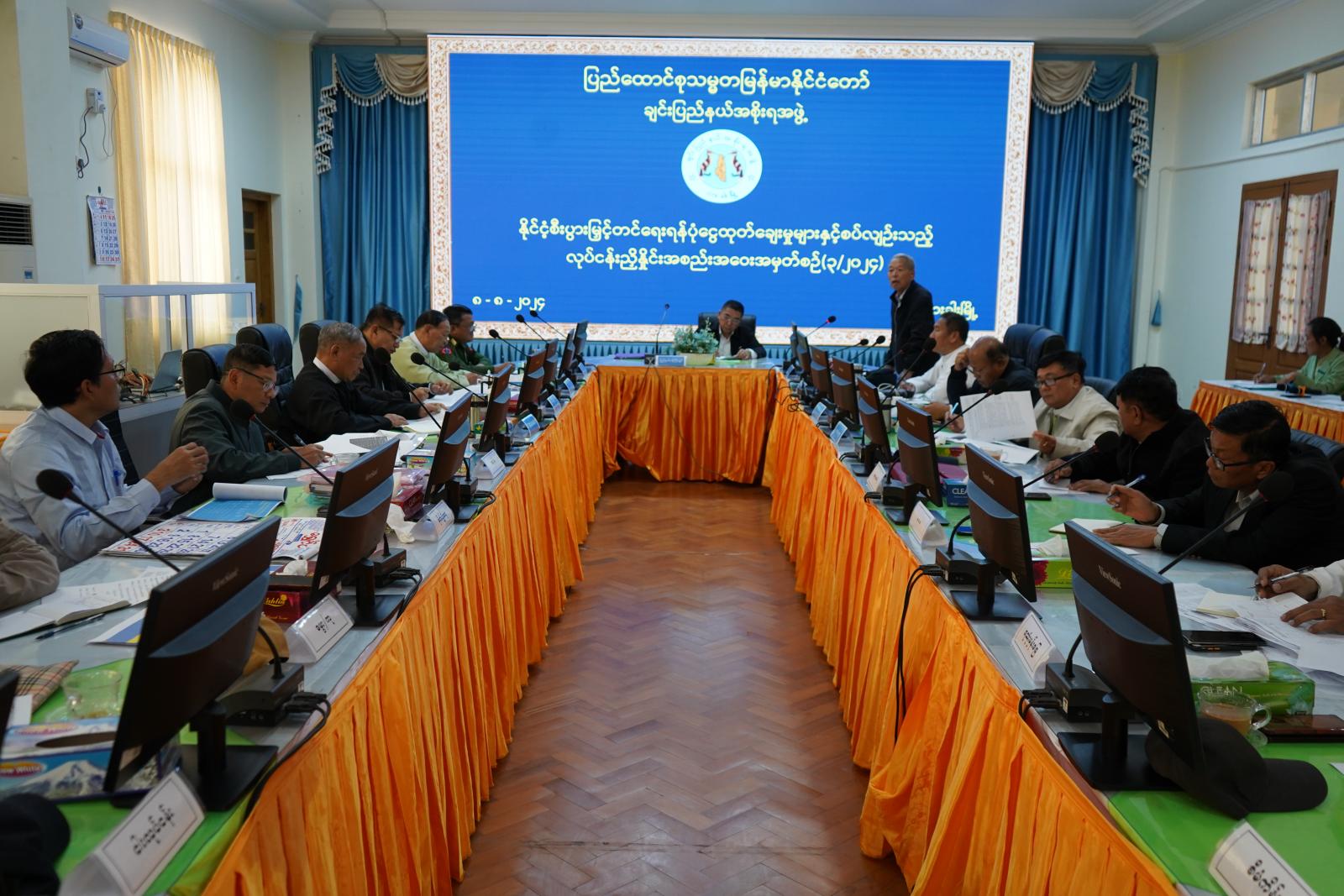 နိုင်ငံ့စီးပွားမြှင့်တင်ရေးရန်ပုံငွေထုတ်ချေးမှုများနှင့် စပ်လျဉ်းသည့် လုပ်ငန်းညှိနှိုင်းအစည်းအဝေးအမှတ်စဉ် (၃/၂၀၂၄) ကို သြဂုတ်လ ၈ ရက် နံနက် ၁၀ နာရီက ဟားခါးမြို့၊ ချင်းပြည်နယ်အစိုးရအဖွဲ့ရုံး အစည်းအဝေးခန်းမ၌ကျင်းပရာ ချင်းပြည်နယ်ဝန်ကြီးချုပ် ဒေါက်တာဝုန်ဆွန်းထန်၊ ပြည်နယ်ဝန်ကြီးများ၊ ပြည်နယ်ဥဒေချုပ်၊ ပြည်နယ်အစိုးရအဖွဲ့အတွင်းရေးမှူးနှင့် ပြည်နယ်အဆင့် ဌာနဆိုင်ရာတာဝန်ရှိသူများ တက်ရောက်ကြသည်။