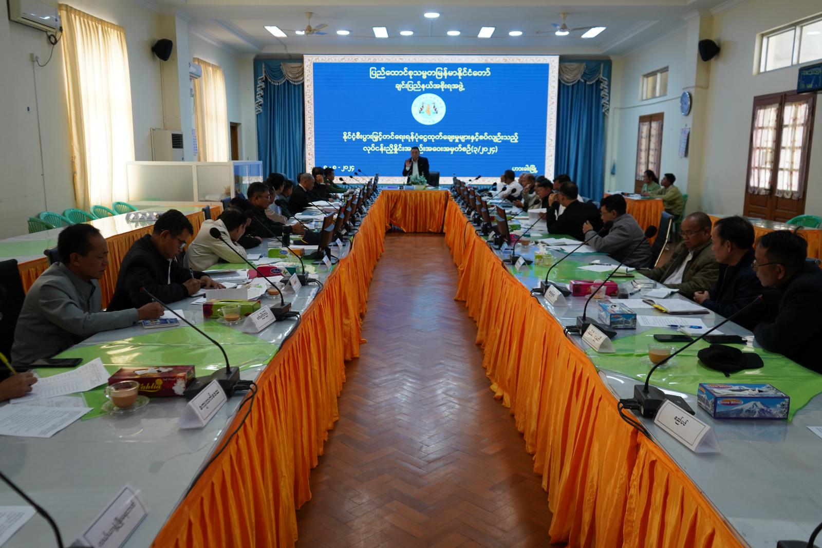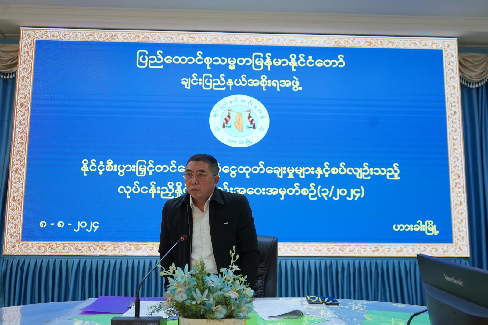 ဦးစွာ ပြည်နယ်ဝန်ကြီးချုပ် ဒေါက်တာဝုန်ဆွန်းထန်က နိုင်ငံ့စီးပွားမြှင့်တင်ရေးရန်ပုံငွေ ထုတ်ချေးမှုနှင့်ပတ်သက်၍ ယခင်အစည်းအဝေးဆုံးဖြတ်ချက်အပေါ် ဆောင်ရွက်ပြီး ၊ ဆောင်ရွက်ဆဲနှင့် ဆက်လက်ဆောင်ရွက်မည့်အစီအမံများကို ဌာနဆိုင်ရာတာဝန်ရှိသူများက ရှင်းလင်းတင်ပြရန်နှင့် ပြည်နယ်အစိုးရအဖွဲ့မှ ပေါင်းစပ်ညှိနှိုင်းဆုံးဖြတ်ဆောင်ရွက်ပေးရန် လိုအပ်သည့်အချက်များကို အစည်းအဝေးတက်ရောက်လာကြသည့် ဌာနဆိုင်ရာတာဝန်ရှိသူများက ပွင့်ပွင့်လင်းလင်း ဆွေးနွေးတင်ပြကြစေလိုကြောင်းဖြင့် အမှာစကားပြောကြားသည်။