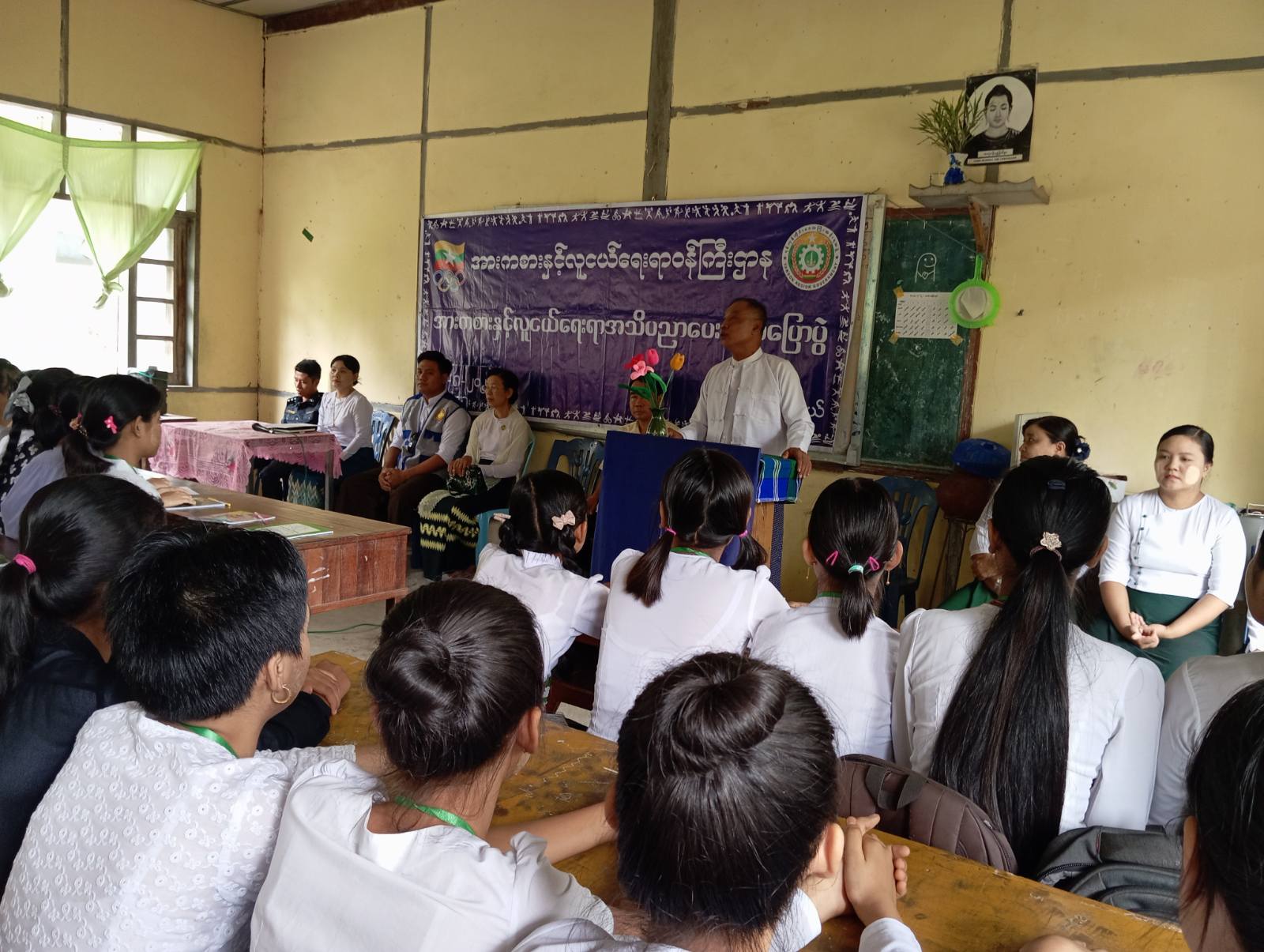 ထို့နောက် ကျောင်းသား/ကျောင်းသူများ အသိပညာတိုးပွားစေရေးအတွက် မူးယစ်ဆေးဝါးအန္တရာယ်အသိပညာပေးနံရံကပ်စာစောင်များ၊ အမျိုးသမီးအကြမ်းဖက်မှုပပျောက်ရေးအသိပညာပေး နံရံကပ်စာစောင်များ၊ ကလေးအလုပ်သမားပပျောက်ရေးနံရံကပ်စာစောင်များနှင့် သုတ/ရသစာအုပ်စာစောင်များ ပြသထားရာကျောင်းသား/ကျောင်းသူများ စိတ်ပါဝင်စားစွာကြည့်ရှုနေကြကြောင်းသိရသည်။