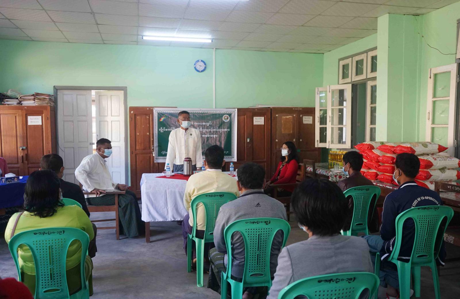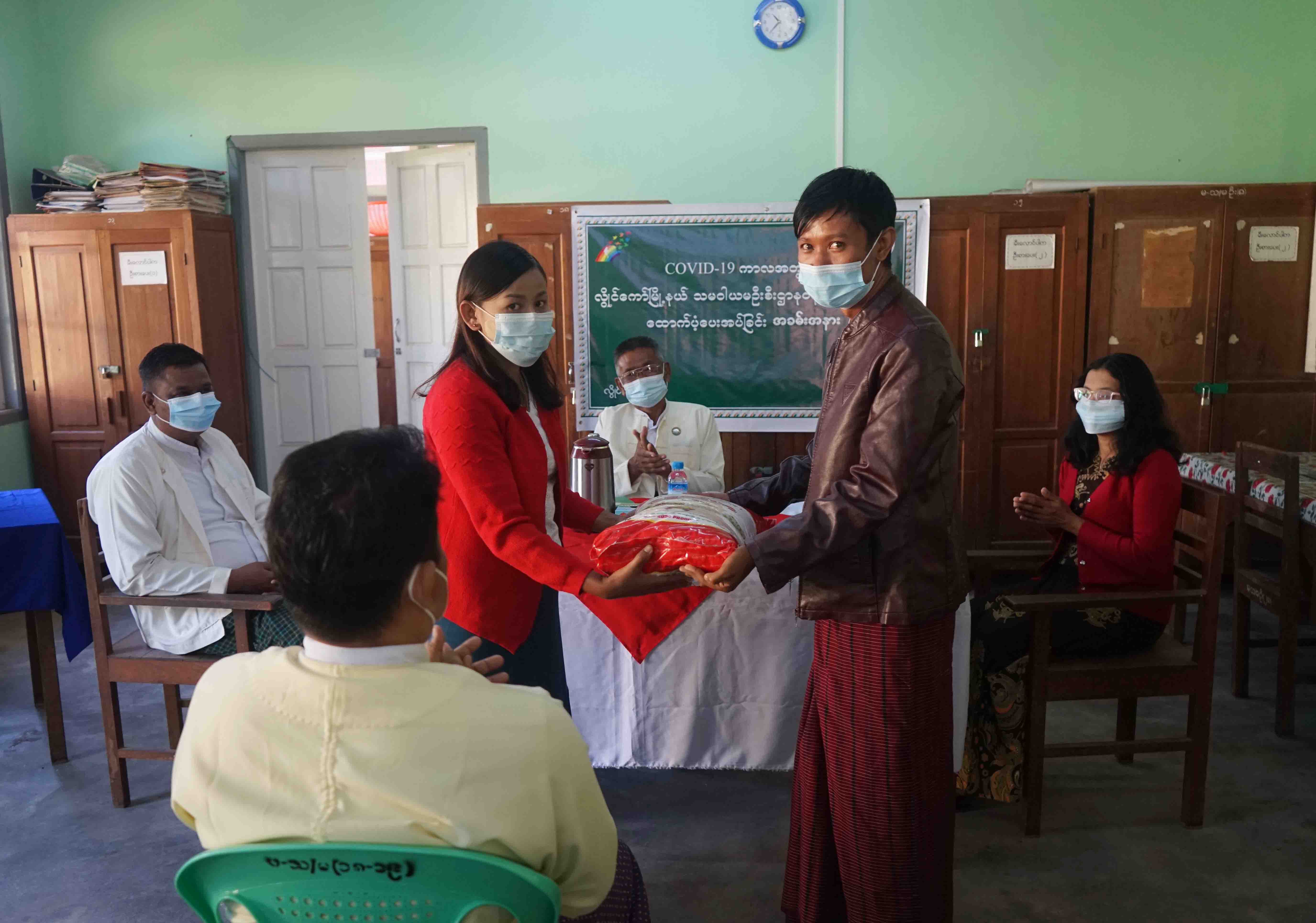 ထို့နောက် မြို့နယ် သမဝါယမဦးစီးဌာန ၊ ဦးစီးအရာရှိ နှင့် မြို့နယ် သမဝါယမအသင်းစု ဥက္ကဋ္ဌ တို့က မြို့နယ်သမဝါယဦးစီးဌာန တွင် တာဝန်ထမ်းဆောင်နေသည့် ဝန်ထမ်းများအား ဆန် (၆) ပြည်နှင့် ဆီ တစ်ဘူး ထောက်ပံ့ပေးအပ်ခဲ့ကြောင်းသိရသည်။