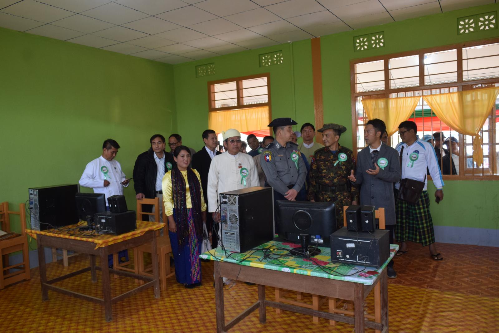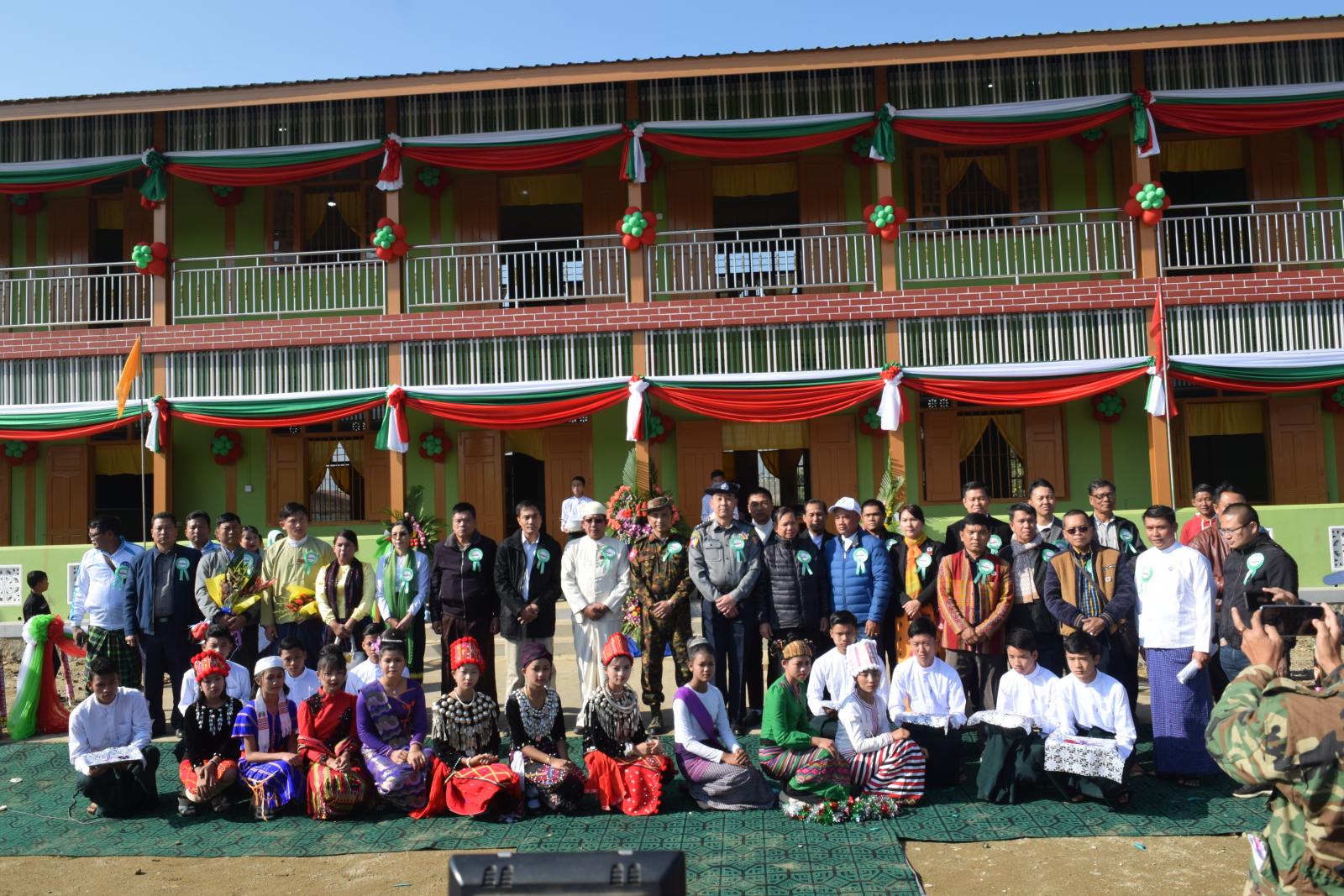 အဆိုပါ ကျောင်းဆောင်သစ်အား ပြည်သူ့လွှတ်တော်ကိုယ်စားလှယ် ဦးတင့်စိုး၊ နယ်မြေခံ တပ်မမှူး ဇော်မျိုးဝင်း၊ ရဲမှူးကြီး သန်းထိုက်စိုး၊ ဒုမြို့နယ်အုပ်ချုပ်ရေးမှူး ဦးဖုန်ဂရိန်နှင့် မြို့နယ်ပညာရေးမှူး ဒေါ်နီလာဆွေတို့က ဖဲကြိုးဖြတ်ဖွင့်လှစ်ပေးခဲ့ကြောင်း သိရသည်။