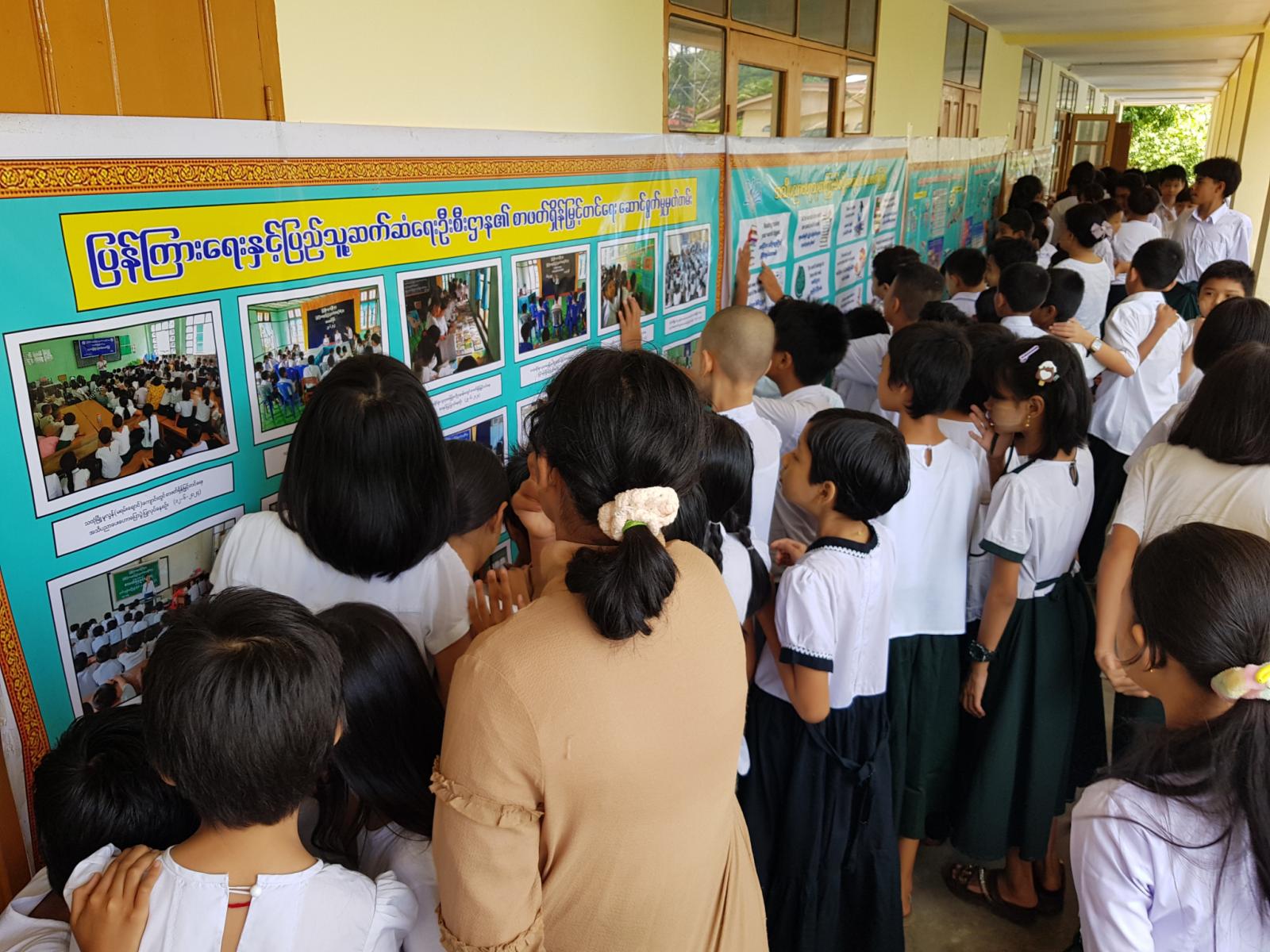 အဆိုပါ အသိပညာပေးလုပ်ငန်းတွင် ပြန်ကြားရေးနှင့်ပြည်သူ့ဆက်ဆံရေးဦးစီးဌာနမှ ကျောင်းသူ၊ ကျောင်းသားများ ဖတ်ရှုလေ့လာနိုင်ရန် ကလေးကဗျာများ၊ ရုပ်ပြပုံပြင်များ၊ စာစောင်များ စသည့်ကလေးများအသိပညာတိုးပွားရေး စာအုပ်စာပေများနှင့် စာဖတ်ရှိန်မြှင့်တင်ရေး၊ မူးယစ်ဆေးဝါးအန္တရာယ် သတိပြုကာကွယ်ရေး စသည့်အသိပညာပေး နံရံကပ်စာစောင်များတို့ကို ခင်းကျင်းပြသရာ ကျောင်းသား၊ ကျောင်းသူများမှစိတ်ပါ၀င်စားစွာ ကြည့်ရှုလေ့လာခဲ့ကြောင်း သိရသည်။