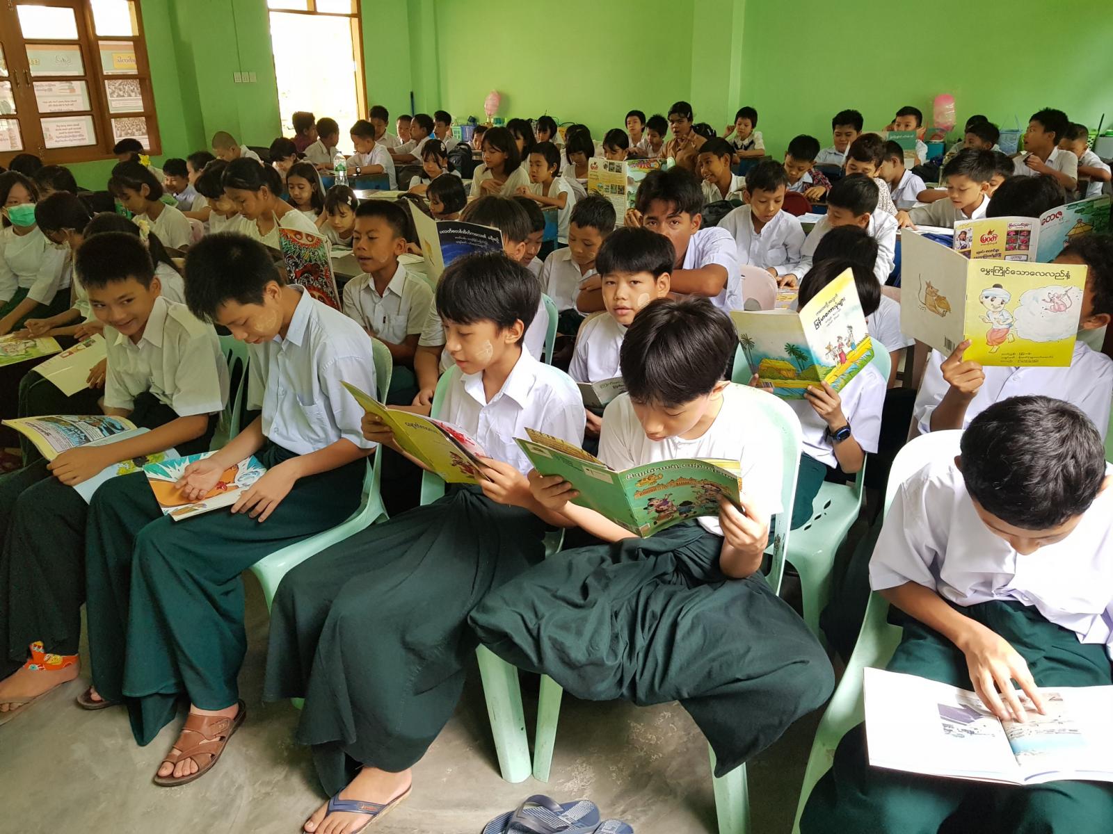 ယင်းနောက် ကျောင်းသား၊ ကျောင်းသူများက ပြန်ကြားရေးနှင့်ပြည်သူ့ဆက်ဆံရေးဦးစီးဌာနမှ ခင်းကျင်းပြသထားသည့် စာအုပ်စာစောင်များကို စိတ်ကြိုက်ရွေးချယ်ဖတ်ရှုကာ စာဖတ်စွမ်းရည်ယှဉ်ပြိုင်ခြင်း၊ ပုံပြင်ပြော၊ ကဗျာရွတ်ဆို ယှဉ်ပြိုင်ခြင်းများ ပြုလုပ်ခဲ့ကြသည်။