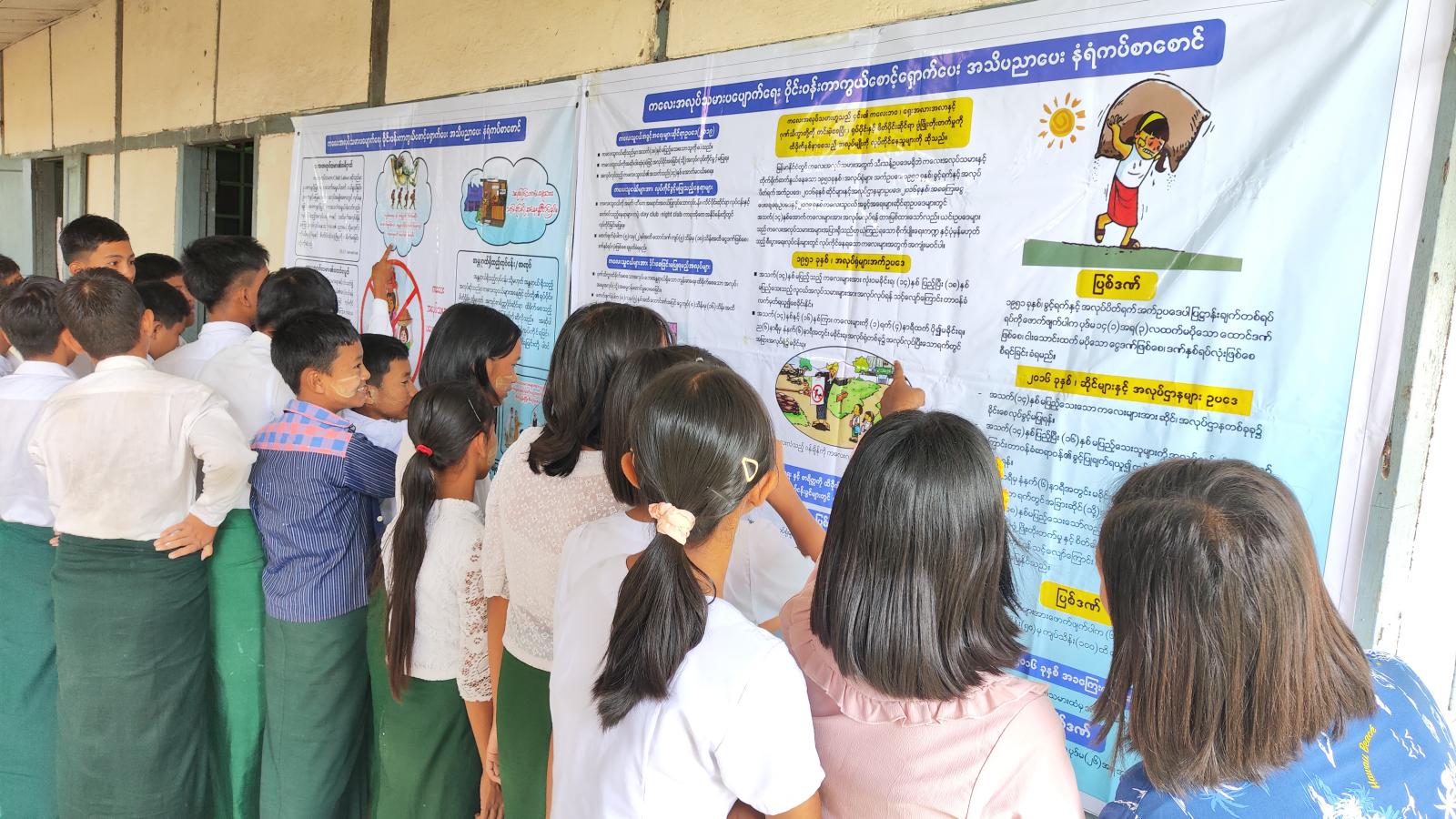 ဆက်လက်၍ ပြန်ကြားရေးနှင့်ပြည်သူ့ဆက်ဆံရေးဦးစီးဌာနမှ ပြသထားသည့် စာအုပ်စာစောင်များ၊ ကလေးအလုပ်သမားပပျောက်ရေးအသိပညာပေး နံရံကပ်စာစောင်များ၊ မူးယစ်ဆေးဝါးအန္တရာယ်အသိပညာပေးနံရံကပ်စာစောင်များကို ကျောင်းသား၊ ကျောင်းသူများက စိတ်ပါဝင်စားစွာ လေ့လာကြည့်ရှုခဲ့ကြကြောင်းနှင့် အဆိုပါ အသိပညာပေး ဟောပြောပွဲနှင့် နံရံကပ်စာစောင်ပြပွဲသို့ အ.ထ.က ပန်းတောင်းကျောင်းမှ ကျောင်းသား၊ ကျောင်းသူ (၂၁) ဦး တက်ရောက်ခဲ့ကြကြောင်း သိရသည်။