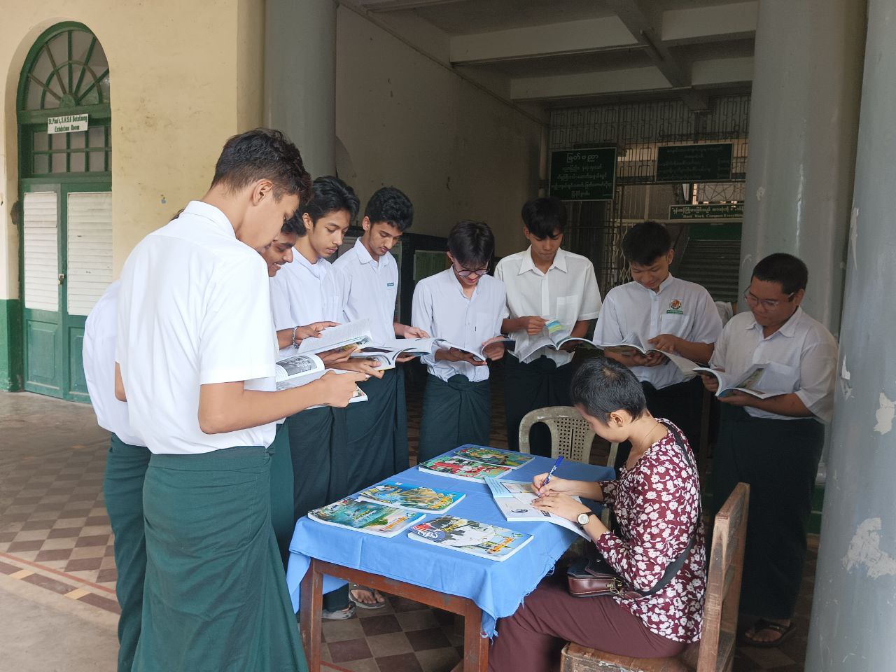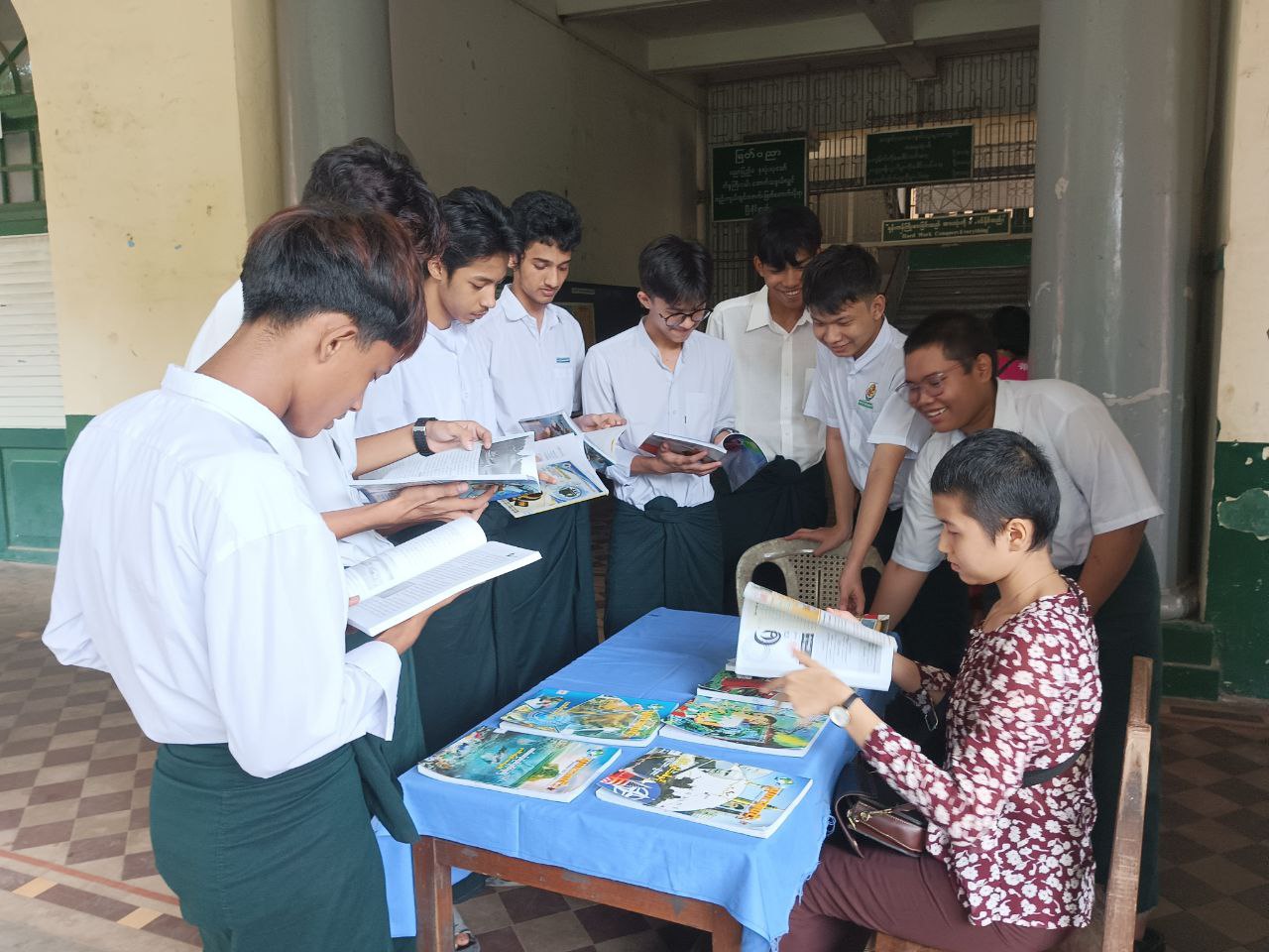 ရန်ကုန်တိုင်းဒေသကြီး၊ ဗိုလ်တထောင်ခရိုင်၊ ဗိုလ်တထောင်မြို့နယ်၌ နယ်လှည့်စာကြည့်တိုက်စနစ်ဖြင့် စာအုပ်စာစောင်များအား အခမဲ့ငှားရမ်းပေးခြင်းကို ပြန်ကြားရေးနှင့်ပြည်သူ့ဆက်ဆံရေးဦးစီးဌာန ဝန်ထမ်းများက ယနေ့နံနက် (၁၀) နာရီခွဲအချိန်က ဗိုလ်တထောင်မြို့နယ် အမှတ် (၆) အခြေခံပညာအထက်တန်းကျောင်းတွင် စာအုပ်များ အခမဲ့ငှားပေးခြင်းများ ဆောင်ရွက်ခဲ့ကြောင်း သိရသည်။