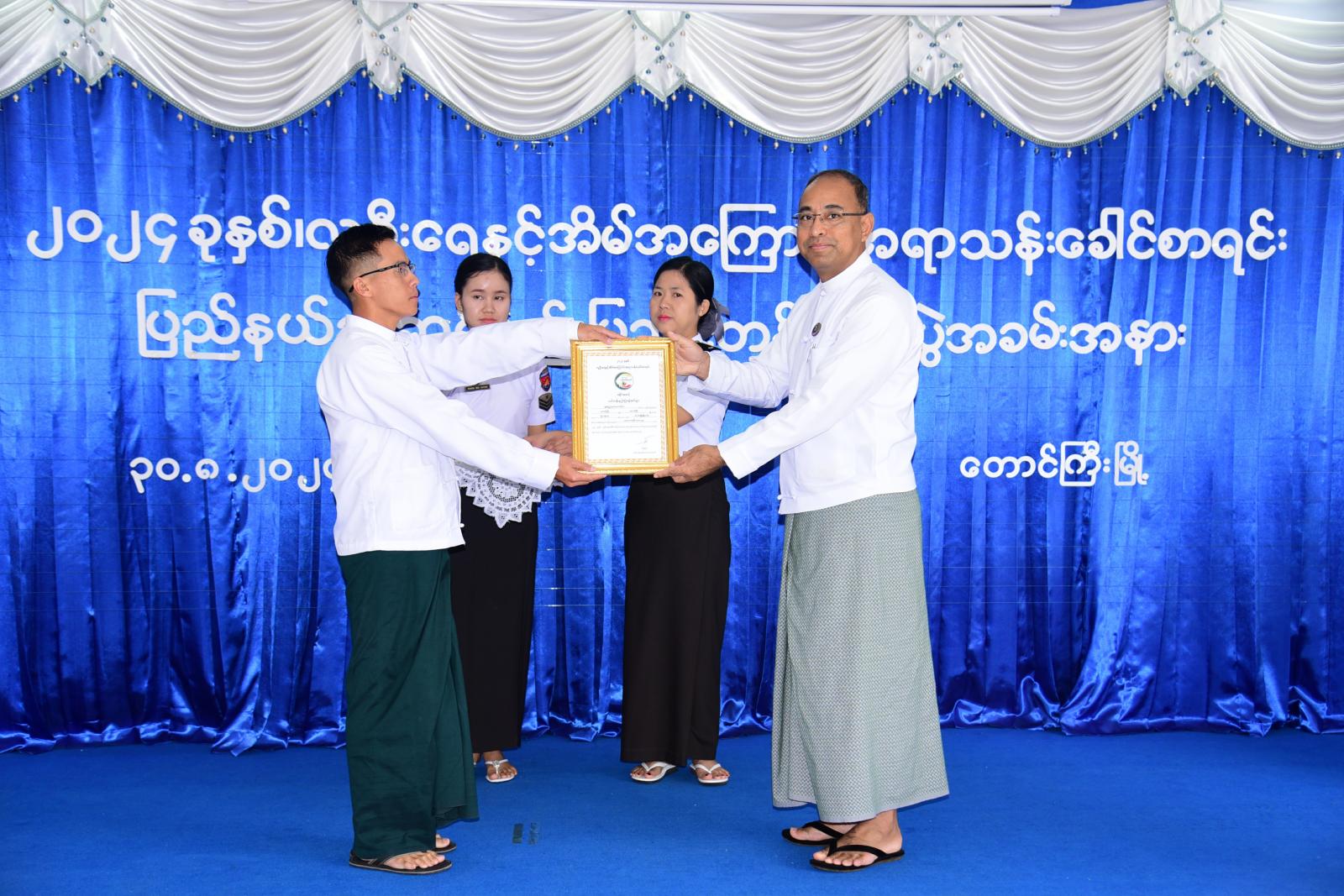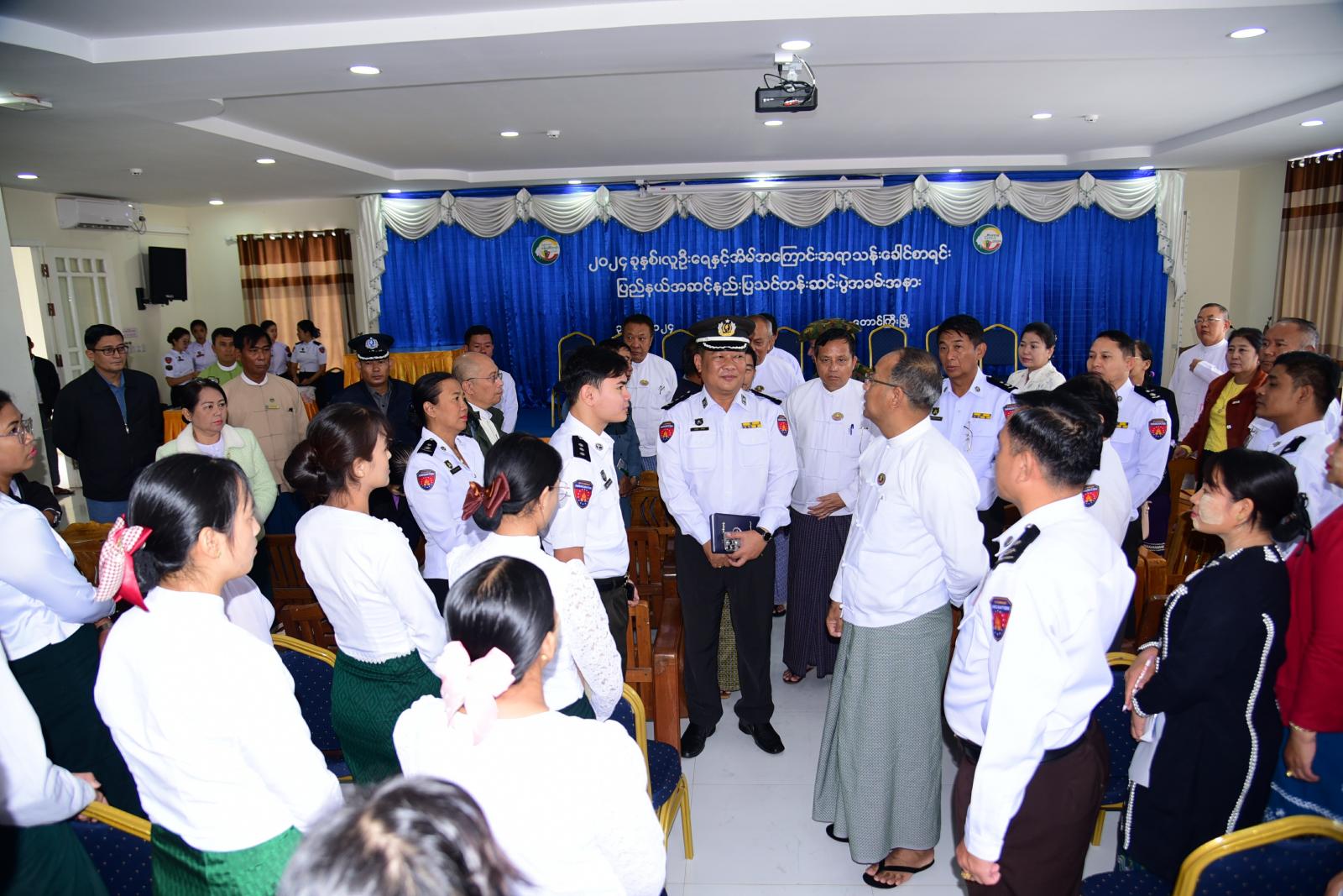 ဆက်လက်၍ ခရိုင်အဆင့် နည်းပြခန့်အပ်လွှာများကို ပြည်နယ်ဝန်ကြီးချုပ် ဦးအောင်အောင်ကပေးအပ်ရာ သင်တန်းသား၊ သင်တန်းသူများမှလက်ခံရယူပြီး စုပေါင်းမှတ်တမ်းတင်ဓာတ်ပုံရိုက်ကူး၍ နည်းပြနှင့် သင်တန်းသား၊ သင်တန်းသူများကို ပြည်နယ်ဝန်ကြီးချုပ်က ရင်းရင်းနှီးနှီးနှုတ်ဆက်ခဲ့ကြောင်း သိရသည်။