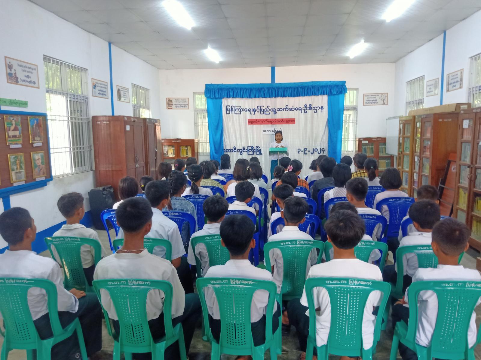 မကွေးတိုင်းဒေသကြီး၊ မြို့သစ်မြို့နယ် ပြန်ကြားရေးနှင့်ပြည်သူ့ဆက်ဆံရေးဦးစီးဌာနမှ ကျောင်းသား၊ ကျောင်းသူများ မျောက်ကျောက်ရောဂါနှင့်ပတ်သက်၍ အသိပညာရရှိစေရန်ရည်ရွယ်၍ မျောက်ကျောက်ရောဂါဆိုင်ရာ အသိပညာပေးဟောပြောပွဲကို ယနေ့မွန်းလွဲ (၁) နာရီက မြို့နယ်ရုံး လူထုအခြေပြုဗဟိုဌာန Community Centre ခန်းမ၌ ဟောပြောဆောင်ရွက်ခဲ့သည်။