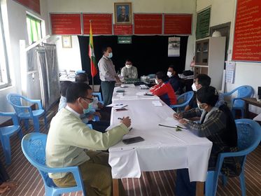 အခမ်းအနားတွင် မြို့နယ်အဆင့် ကိုဗစ်-၁၉ ရောဂါကာကွယ်ထိန်းချုပ်၊ကုသရေး ဥက္ကဋ္ဌ ဦးဇာနည်တိုးက ကိုဗစ်-၁၉ရောဂါ၏ဆိုးကျိုးသက်ရောက်မှုများကို ဖြေလျှော့နိုင်ရန် ထုတ်ပြန်ထား သည့် “အားလုံးတစ်ပေါင်းတည်းကျော်လွှားခြင်း ကိုဗစ်-၁၉ စီးပွားရေးထိခိုက်မှု သက်သာရေး စီမံချက် COVID -19 Economic Relief Plan- CERP)” ပါလုပ်ငန်းစဉ်များအရ အခြေခံ စားသောက်ကုန်(၅)မျိုး၊ ထောက်ပံ့ငွေ(၄) ကြိမ်၊ ငွေပိုက်အစီ အစဉ်များ ထောက်ပံ့ပေးခဲ့ကြောင်း၊ ရွေးကောက်ပွဲ အကြိုကာလနှင့်ရွေးကောက်ပွဲ နောက်ပိုင်း ဖြစ်ပေါ်ခဲ့သော လူစုလူဝေးများကြောင့် ရောဂါကူးစက်ဖြစ်ပွားမှုတိုးမြှင့်ခြင်း ရှိ / မရှိ စောင့်ကြပ်ကြည့်ရှု ကာကွယ်ထိန်းချုပ်ခြင်းများကို ကျန်းမာရေးနှင့် အားကစားဝန်ကြီးဌာနမှ အရှိန်အဟုန်မြှင့်တင် ဆောင်ရွက်လျက်ရှိသည့်အပြင် အထူးအစီ အစဉ်အနေဖြင့် တိုင်းဒေသကြီး/ပြည်နယ်အစိုးရအဖွဲ့များ ဦးဆောင်၍ မျက်နှာနှင့် နှာခေါင်းစည်း မဖြစ်မနေတပ်ဆင်ရေး လူထုလှုပ်ရှားမှုစီမံချက် (Mask and Face Shield Campaign) ဖြင့်ဆောင်ရွက်လျက်ရှိကြောင်း၊ ပြည် သူထူထုအနေဖြင့် မလိုအပ်ဘဲခရီးသွားလာခြင်း၊ လူစုလူဝေးပြုလုပ်ခြင်း စသည်တို့ကို ဆောင်ရွက်ခြင်းမပြုဘဲ ကျန်းမာရေးနှင့် အားကစားဝန်ကြီး ဌာနမှ ထုတ်ပြန်ထားသည့် ညွှန်ကြားချက်များနှင့်အညီ လိုက်နာဆောင်ရွက် ကြရန် ၊ မိမိတို့၏နေထိုင်ရာ နေအိမ်များတွင်သာ တတ်နိုင်သမျှ (Stay Home) နေကြရန် ရှင်းလင်း ပြောကြားပြီး တက်ရောက်လာသော မြို့နယ်အဆင့် ကိုဗစ်-၁၉ ရောဂါ ကာကွယ်၊ ထိန်းချုပ်၊ ကုသရေး ကော်မတီဝင်များက အပြန်အလှန်ဆွေးနွေး ခဲ့သည်။ အဆိုပါအခမ်းအနားသို့ မြို့နယ်အုပ်ချုပ်ရေးမှူး ဦးဇာနည်တိုးနှင့် မြို့နယ်အဆင့် ကိုဗစ်- ၁၉ ရောဂါကာကွယ်၊ ထိန်းချုပ်၊ ကုသရေး ကော်မတီဝင် (၁၃) ဦး တက်ရောက်ခဲ့သည်။