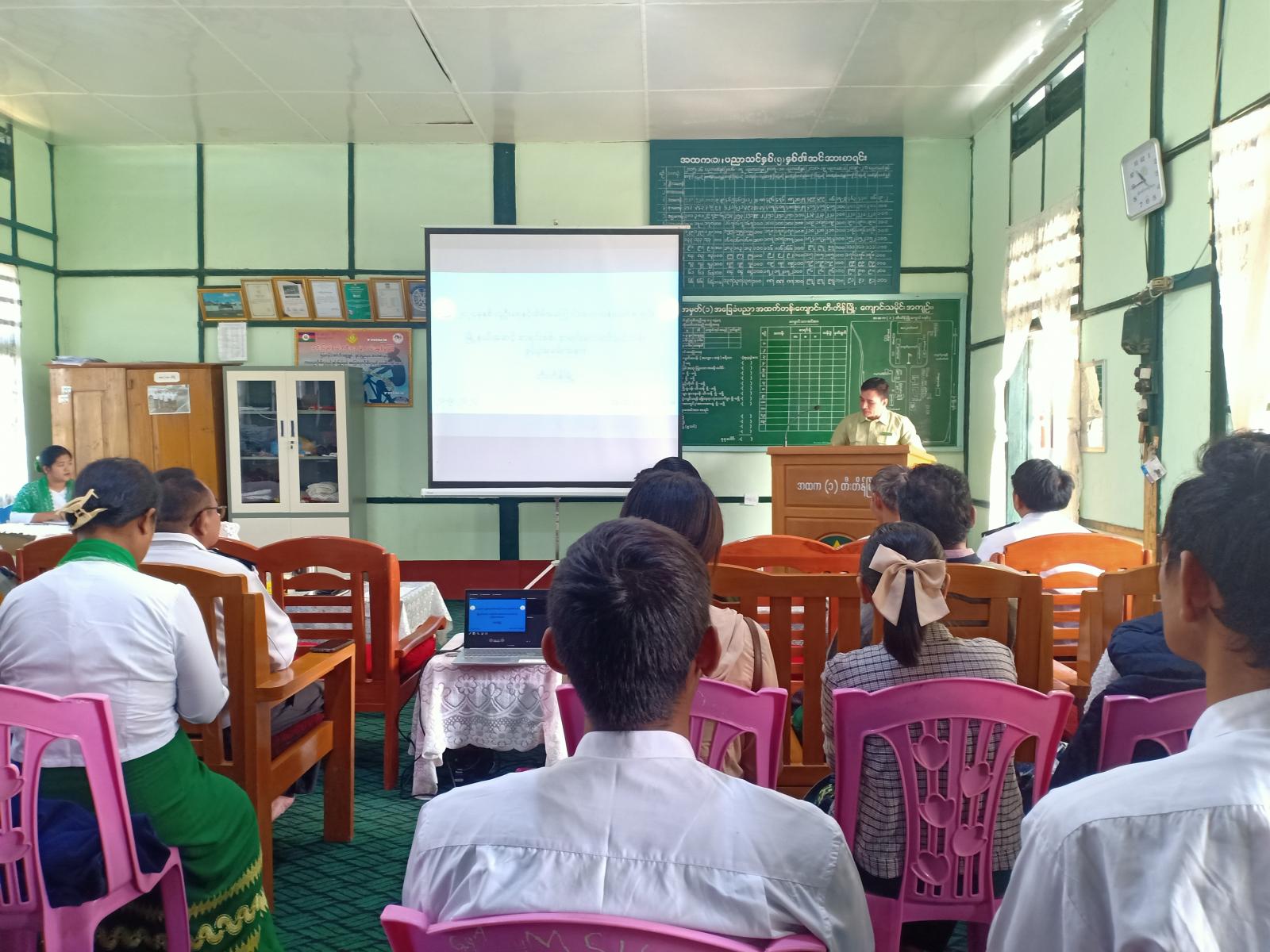 ချင်းပြည်နယ်၊ တီးတိန်ခရိုင်၊ တီးတိန်မြို့၌ ၂၀၂၄ခုနှစ် လူဦးရေနှင့်အိမ်အကြောင်းအရာသန်းခေါင်စာရင်း မြို့နယ်အဆင့်စာရင်းစစ်၊ စာရင်းကောက်သင်တန်းဖွင့်ပွဲကို အမှတ်(၁)အခြေခံပညာအထက်တန်းကျောင်း၊ တီးတိန်ခန်းမတွင် ယမန်နေ့နံနက် ၁၀ နာရီအချိန်က ပြုလုပ်သည်။
