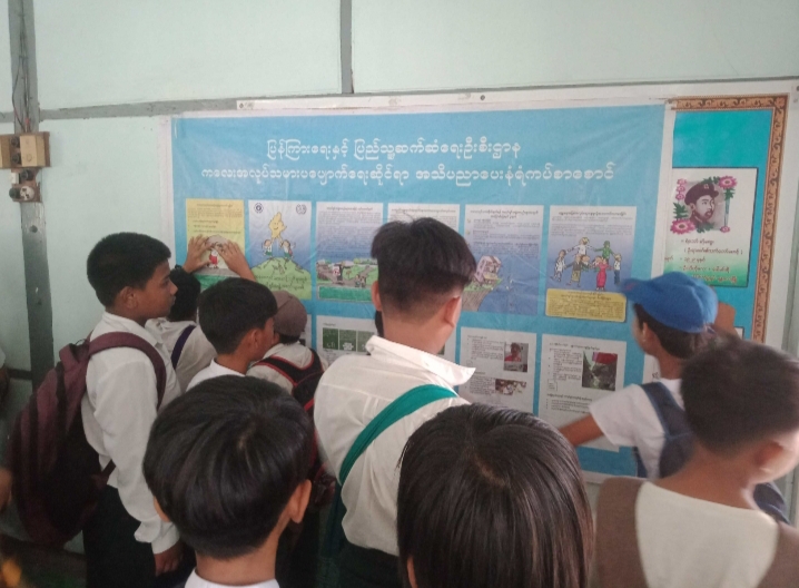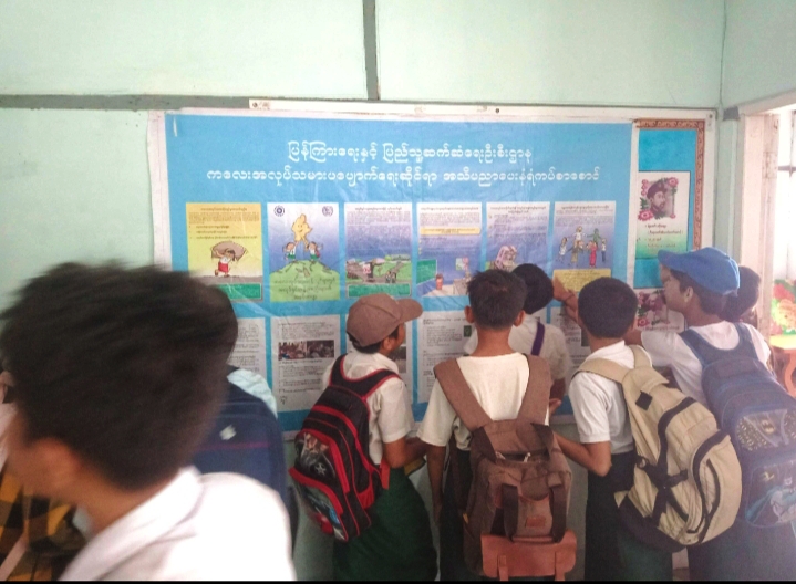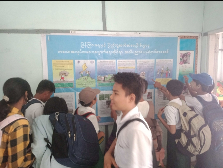 ထို့နောက် ပြသထားသည့် ကလေးသူငယ်အလုပ်သမားပပျောက်ရေးဆိုင် နံရံကပ်စာစောင်နှင့် ဓာတ်ပုံများကို ကြည့်ရှုလေ့လာကြပြီး လူထုအခြေပြုဗဟိုဌာန (Community Centre) ခန်းမနှင့် စာကြည့်တိုက်သို့ တက်ရောက်လာကြသည့် အမှတ် (၂) အခြေခံပညာအထက်တန်းကျောင်းမှ (Grade-5) ကျောင်းသား၊ ကျောင်းသူကလေးငယ်များနှင့် ဆရာ၊ ဆရာမများက ခင်းကျင်းပြသထားသည့် သုတ၊ ရသ၊ စာအုပ်များကို စိတ်ဝင်တစား ဖတ်ရှုလေ့လာကြကြောင်း သိရသည်။