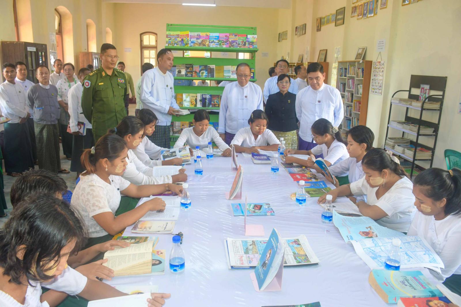 ထို့နောက် ပြည်နယ်ဝန်ကြီးချုပ်နှင့်အဖွဲ့သည် စစ်တွေမြို့ပေါ်ရှိ အခြေခံပညာကျောင်းများမှ ကျောင်းစာကြည့်တိုက်များဖွံ့ဖြိုးတိုးတက်ရေးနှင့် စာဖတ်ရှိန်မြှင့်တင်ရေးလှုပ်ရှားမှုအခမ်းအနားသို့ တက်ရောက်လာ ကျောင်းသား၊ ကျောင်းသူများအား ရင်းရင်းနှီးနှီးတွေ့ဆုံနှုတ်ဆက်ကာ သင်ထောက်ကူပစ္စည်းများနှင့် စားသောက်ဖွယ်ရာများပေးအပ်ကြပြီး ကျောင်းစာကြည့်တိုက်အတွင်း ကျောင်းသား၊ ကျောင်းသူများ စာပေလေ့လာဖတ်ရှုနေမှုကို လှည့်လည်ကြည့်ရှုအားပေးကြသည်။ ဆက်လက်၍ ပြည်နယ်ဝန်ကြီးချုပ်က ကျောင်းစာကြည့်တိုက်အတွက် ရခိုင်ပြည်နယ်အစိုးရအဖွဲ့မှ လှူဒါန်းသည့် စာအုပ်စာစောင်များကို ပေးအပ်လှူဒါန်းခဲ့သည်။