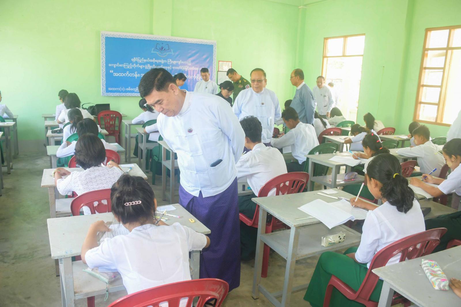 ထို့နောက် ပြည်နယ်ဝန်ကြီးချုပ်နှင့်အဖွဲ့သည် ကျောင်းခန်းမ၌ အထက်တန်းနှင့် အလယ်တန်းအဆင့် စာစီစာကုံးပြိုင်ပွဲတွင် ကျောင်းသား၊ ကျောင်းသူများ ဝင်ရောက်ယှဉ်ပြိုင်နေမှုကို လှည့်လည် ကြည့်ရှုအားပေးပြီး လိုအပ်သည်များကို တာဝန်ရှိသူများနှင့် ပေါင်းစပ်ညှိနှိုင်းပေးခဲ့သည်။