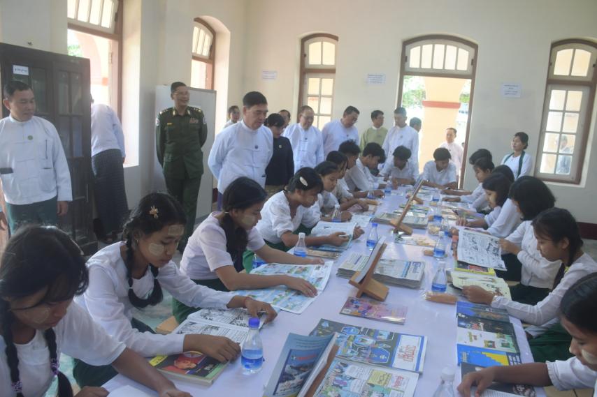 ရခိုင်ပြည်နယ်အစိုးရအဖွဲ့၏ ကြီးကြပ်မှုဖြင့် ပြန်ကြားရေးနှင့်ပြည်သူ့ဆက်ဆံရေးဦးစီးဌာနနှင့် အခြေခံပညာဦးစီးဌာနတို့ ပူးပေါင်းဆောင်ရွက်သည့် ကျောင်းစာကြည့်တိုက်များ ဖွံ့ဖြိုးတိုးတက်ရေးနှင့် စာဖတ်ရှိန်မြှင့်တင်ရေးလှုပ်ရှားမှုပွဲတော်ကို ယနေ့နံနက်ပိုင်းက စစ်တွေမြို့၊ အမှတ်(၁) အခြေခံပညာ အထက်တန်းကျောင်း၌ ကျင်းပရာ ရခိုင်ပြည်နယ်ဝန်ကြီးချုပ် ဦးထိန်လင်း၊ ပြည်နယ်တရားလွှတ်တော် တရားသူကြီးချုပ်၊ ပြည်နယ်အစိုးရအဖွဲ့ဝင်များ၊ ဌာနဆိုင်ရာများ၊ ဆရာ၊ ဆရာမများနှင့် ကျောင်းသား၊ ကျောင်းသူများ တက်ရောက်ကြသည်။