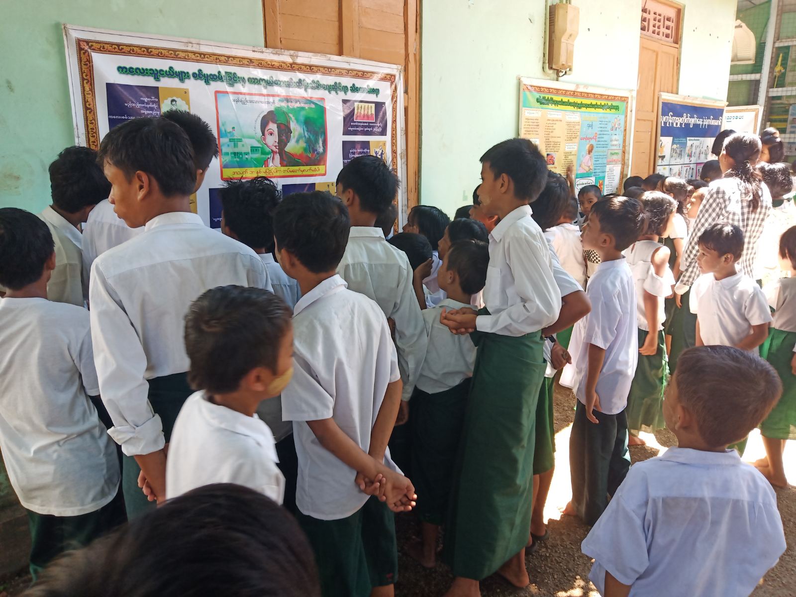 အဆိုပါ အသိပညာပေးလုပ်ငန်းတွင် ပြန်ကြားရေးနှင့်ပြည်သူ့ဆက်ဆံရေးဦးစီးဌာနမှ ကျောင်းသူ၊ ကျောင်းသားများ ဖတ်ရှုလေ့လာနိုင်ရန် ကလေးကဗျာများ၊ ရုပ်ပြပုံပြင်များ၊ စာစောင်များ စသည့်ကလေးများအသိပညာတိုးပွားရေး စာအုပ်စာပေများနှင့်၊ စာဖတ်ရှိန်မြှင့်တင်ရေး၊ မူးယစ်ဆေးဝါးအန္တရာယ် သတိပြုကာကွယ်ရေး စသည့်အသိပညာပေး နံရံကပ်စာစောင်များကို ခင်းကျင်းပြသရာ ကျောင်းသား၊ ကျောင်းသူများမှ စိတ်ပါ၀င်စားစွာကြည့်ရှုလေ့လာခဲ့ကြောင်း သိရသည်။