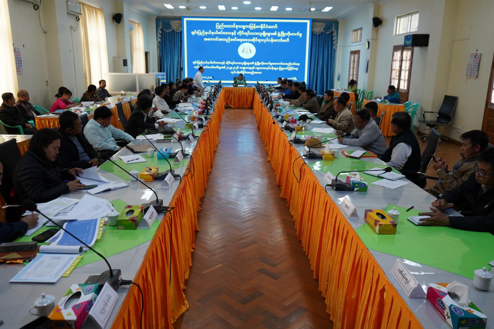 ချင်းပြည်နယ်နယ်စပ်ဒေသနှင့် တိုင်းရင်းသားလူမျိုးများ၏ ဖွံ့ဖြိုးတိုးတက်မှု အကောင်အထည်ဖော်ရေး ချင်းပြည်နယ်ဒေသဆိုင်ရာလုပ်ငန်းကော်မတီများ၏ ၂၀၂၅−၂၀၂၆ ဘဏ္ဍာရေးနှစ် လျာထားလုပ်ငန်းများ ပြုစုတင်ပြနိုင်ရေး လုပ်ငန်းညှိနှိုင်းအစည်းအဝေးကို အောက်တိုဘာလ ၄ ရက်နေ့ မွန်းလွှဲ ၂ နာရီက ဟားခါးမြို့ ၊ ချင်းပြည်နယ်အစိုးရအဖွဲ့ရုံး အစည်းအဝေးခန်းမ၌ ကျင်းပရာ ချင်းပြည်နယ်ဝန်ကြီးချုပ် ကိုယ်စား၊ လုံခြုံရေးနှင့်နယ်စပ်ရေးရာဝန်ကြီး ဗိုလ်မှူးကြီးသိန်းထွန်းအောင်၊ ပြည်နယ်ဝန်ကြီးများ၊ ပြည်နယ်ဥပဒေချုပ်၊ ပြည်နယ်အစိုးရအဖွဲ့ အတွင်းရေးမှူးနှင့် ပြည်နယ်အဆင့်ဌာနဆိုင်ရာတာဝန်ရှိသူများ တက်ရောက်ကြသည်။