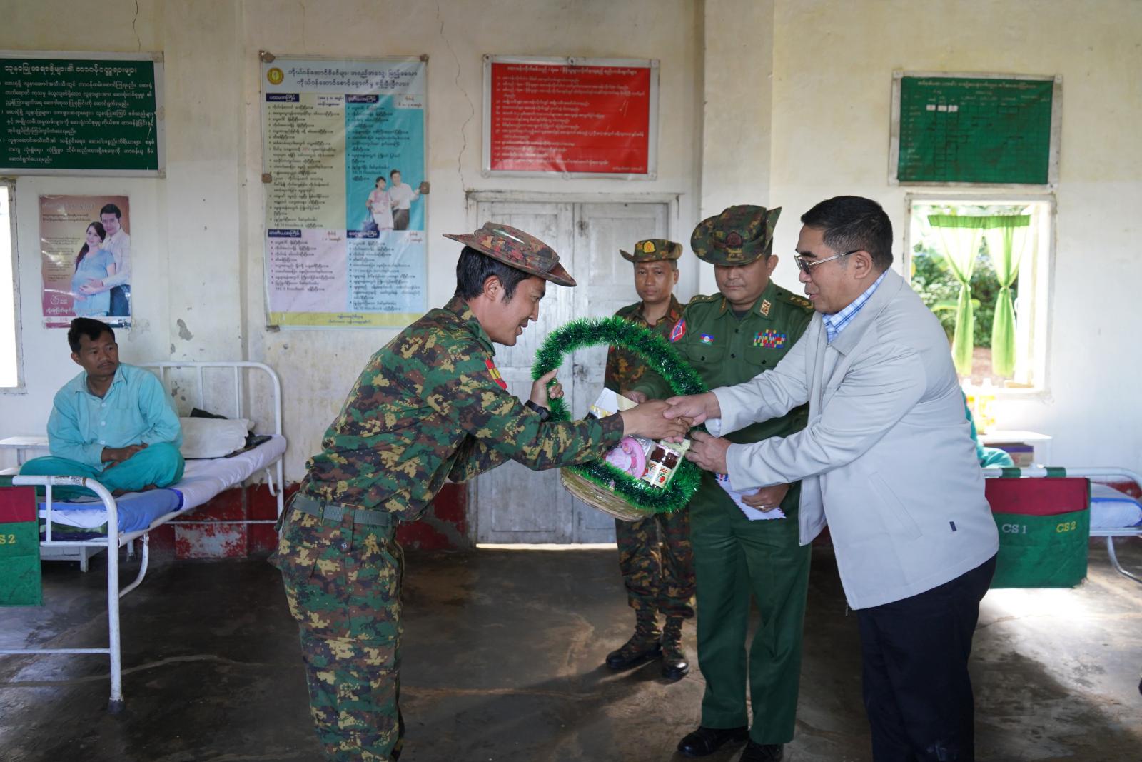 ချင်းပြည်နယ်ဝန်ကြီးချုပ် ဒေါက်တာဝုန်ဆွန်းထန် ယမန်နေ့ နံနက် ၁၁ နာရီက စစ်ဗျူဟာအခြေချ(ဟားခါး)တပ်နယ် အမှတ်(၁)နယ်လှည့်စစ်မြေပြင် ဆေးတပ်စု ကုတင် ၂၀ တွင် ဆေးရုံတက်ရောက်ကုသလျက်ရှိသော အရာရှိစစ်သည်များအား ကြည့်ရှုအားပေးပြီး ထောက်ပံ့ငွေများ ပေးအပ်သည်။