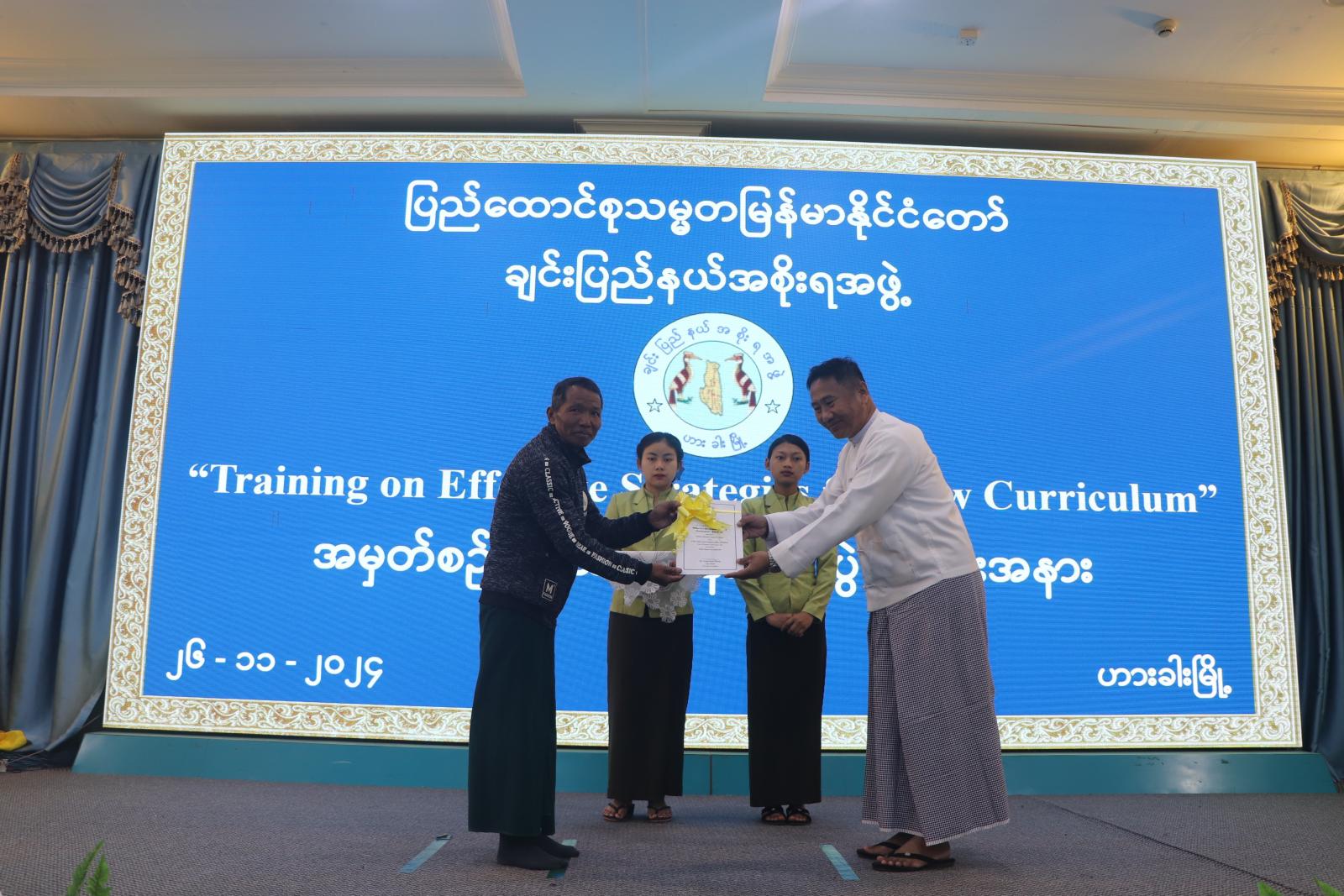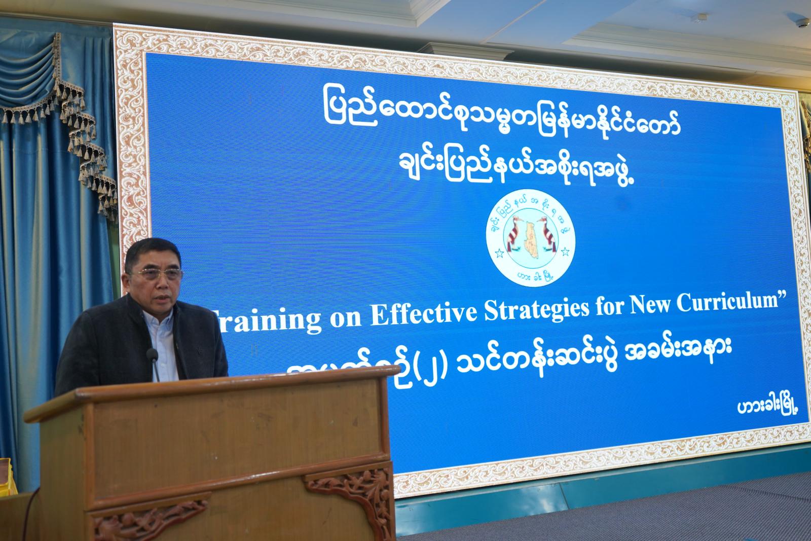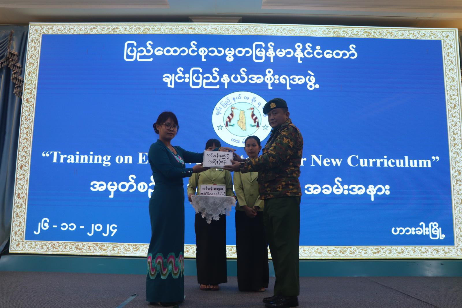 ချင်းပြည်နယ်အစိုးရအဖွဲ့၏ ဦးဆောင်မှုဖြင့် ဟားခါးပညာရေးဒီဂရီကောလိပ်က ကြီးကြပ်ဖွင့်လှစ်ပို့ချမည့် “Training on Effective Strategies for New Curriculum” သင်တန်းဆင်းပွဲအခမ်းအနားကို ဟားခါးမြို့၊ ချင်းပြည်နယ်အစိုးရအဖွဲ့ရုံးရှိ ပြည်နယ်အထွေထွေအုပ်ချုပ်ရေးဦးစီးဌာန၊ အစည်းအဝေးခန်းမ၌ ယမန်နေ့ နံနက် ၉ နာရီခွဲက ကျင်းပရာ ချင်းပြည်နယ်ဝန်ကြီးချုပ် ဒေါက်တာဝုန်ဆွန်းထန်၊ ပြည်နယ်တရားလွှတ်တော်တရားသူကြီးချုပ် ဦးနေစိုး၊ ပြည်နယ်ဝန်ကြီးများ၊ ပြည်နယ်အဆင့်ဌာနဆိုင်ရာတာဝန်ရှိသူများနှင့် သင်တန်းသား၊ သင်တန်းသူ ဆရာ၊ ဆရာမများ တက်ရောက်ကြသည်။