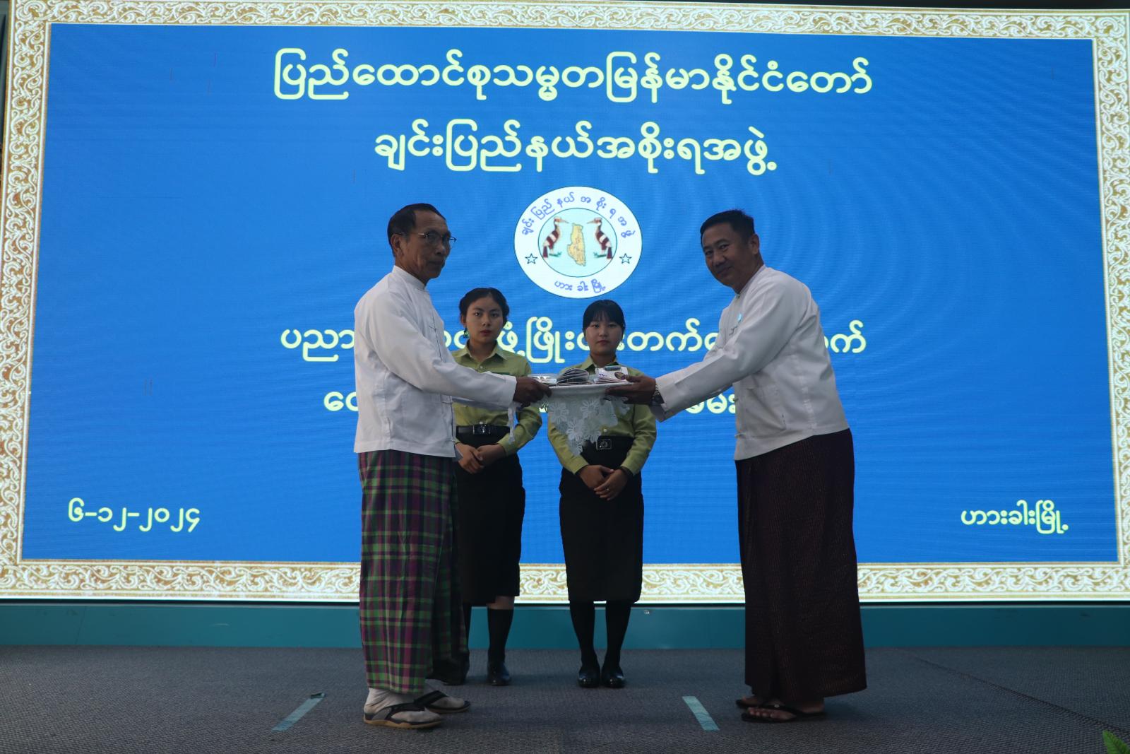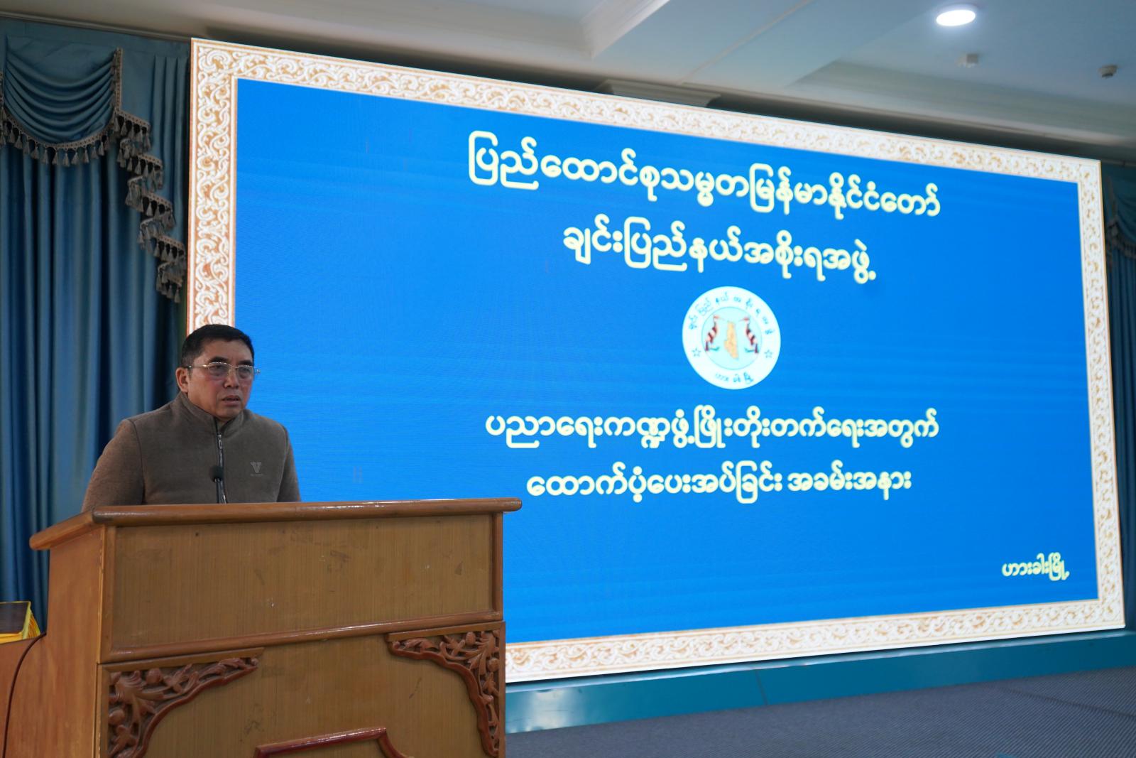 ပညာရေးကဏ္ဍ ဖွံ့ဖြိုးတိုးတက်ရေးအတွက် ထောက်ပံ့ပေးအပ်ခြင်းအခမ်းအနားကို ဟားခါးမြို့၊ ချင်းပြည်နယ်အစိုးရအဖွဲ့ရုံးရှိ ပြည်နယ်အထွေထွေအုပ်ချုပ်ရေးဦးစီးဌာန အစည်းအဝေးခန်းမ၌ ယမန်နေ့မွန်းလွှဲ (၂)နာရီက ကျင်းပရာ ချင်းပြည်နယ်ဝန်ကြီးချုပ် ဒေါက်တာဝုန်ဆွင်းထန်၊ ပြည်နယ်တရားလွှတ်တော် တရားသူကြီးချုပ် ဦးနေစိုး၊ ပြည်နယ်ဝန်ကြီးများ၊ ပြည်နယ်ဥပဒေချုပ်၊ ပြည်နယ်အစိုးရအဖွဲ့အတွင်းရေးမှူး၊ ပြည်နယ်အဆင့် ဌာနဆိုင်ရာတာဝန်ရှိသူများနှင့် ဟားခါးမြို့ပေါ်ရှိ အခြေခံပညာ ကျောင်းဆရာ၊ ဆရာမများ တက်ရောက်ကြသည်။