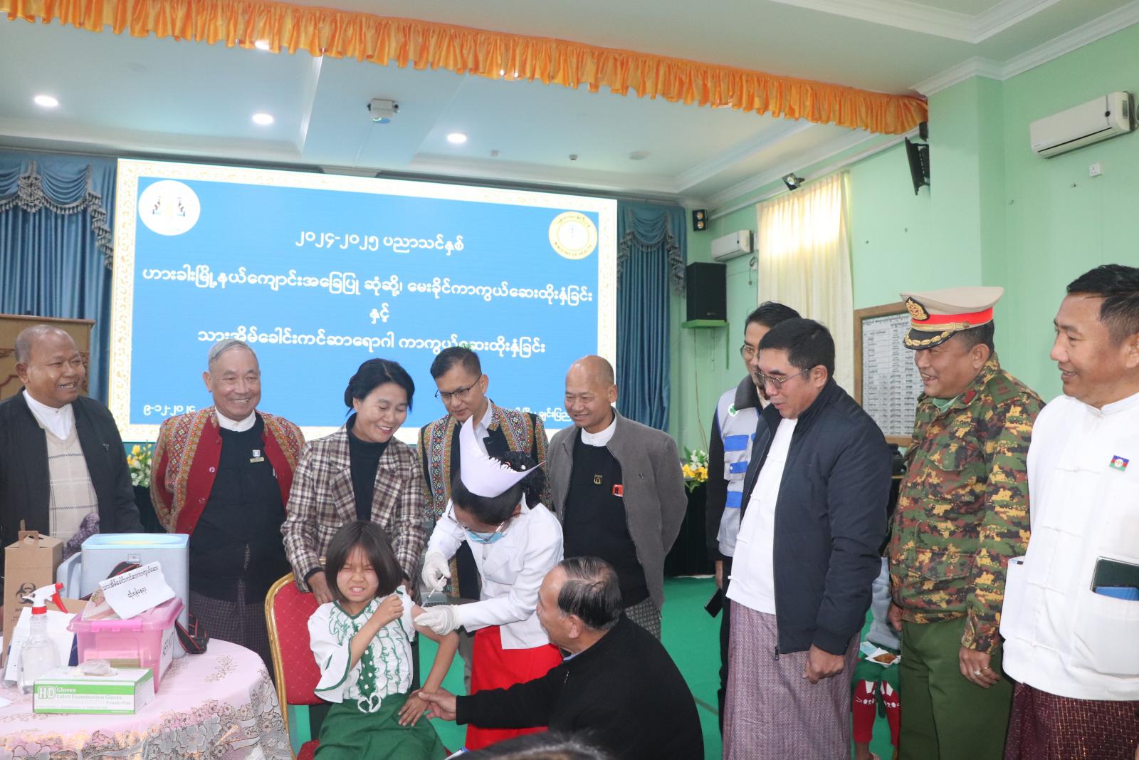 ကာကွယ်ဆေးများကို ချင်းပြည်နယ်၊ ဟားခါးမြို့ရှိ ကျန်းမာရေးဝန်ထမ်းများက ထိုးနှံပေးခြင်းဖြစ်ပြီး ဟားခါးမြို့ပေါ်ရှိ အခြေခံပညာကျောင်းများနှင့် ကိုယ်ပိုင်ကျောင်းများတွင် ပညာသင်ကြားနေသော အသက်(၉)နှစ်မှ (၁၀)နှစ်အရွယ် ကျောင်းသူ(၂၂၄)ဦးကို သားအိမ်ခေါင်းကင်ဆာ ရောဂါကာကွယ်ဆေး၊ အသက်(၅)နှစ်ပြည့်ပြီး (၇)နှစ်မကျော်သော KG ကျောင်းသား၊ ကျောင်းသူ (၃၂၈)ဦးကို ဆုံဆို့၊ မေးခိုင်ကာကွယ်ဆေး ထိုးနှံပေးနိုင်ခဲ့ကြောင်း သိရသည်။