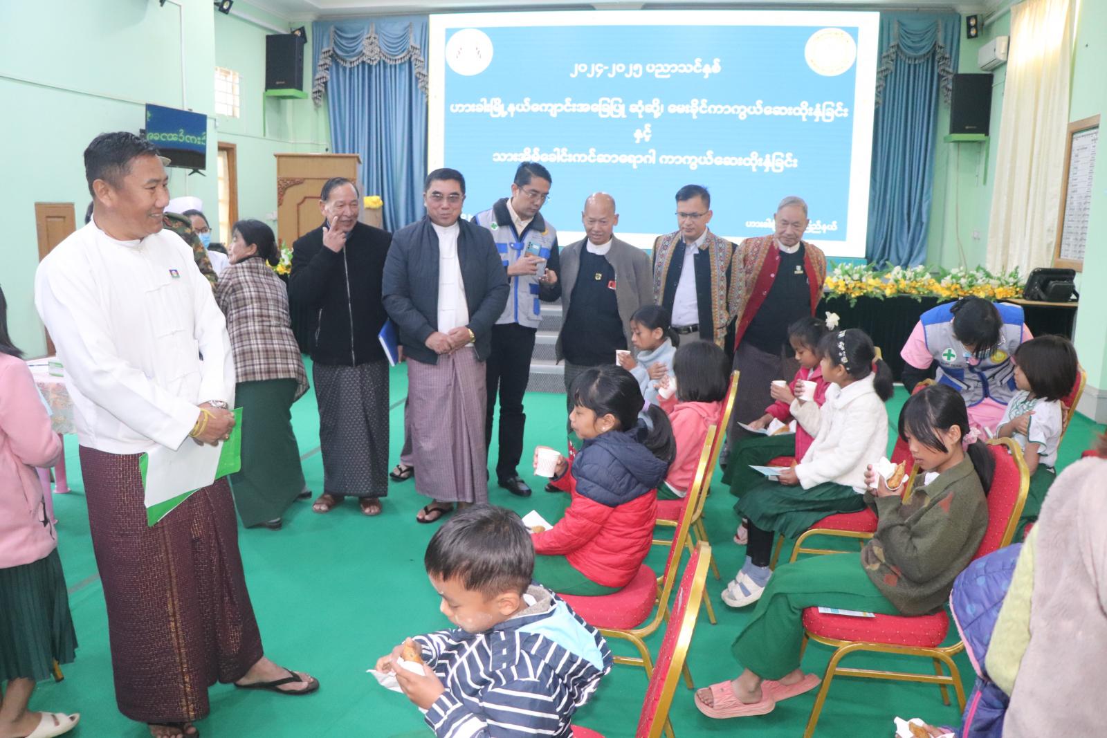 ၂၀၂၄−၂၀၂၅ ပညာသင်နှစ် ကျောင်းအခြေပြုသားအိမ်ခေါင်းကင်ဆာရောဂါကာကွယ်ဆေးနှင့် ဆုံဆို့၊ မေးခိုင်ကာကွယ်ဆေးထိုးနှံပေးခြင်းကို ယမန်နေ့ နံနက် ၁၁ နာရီက ဟားခါးမြို့ပေါ်ရှိ အခြေခံပညာအထက်တန်းကျောင်း(၄)ကျောင်း၊ မူလွန်ကျောင်း(၁)ကျောင်း၊ အခြေခံပညာမူလတန်းကျောင်း(၁)ကျောင်း၊ ကိုယ်ပိုင်ကျောင်း(၇)ကျောင်း စုစုပေါင်းကျောင်း(၁၃)ကျောင်းနှင့် ချင်းပြည်နယ်အစိုးရအဖွဲ့ရုံးများတွင်ကျင်းပရာ ချင်းပြည်နယ်ဝန်ကြီးချုပ် ဒေါက်တာဝုန်ဆွန်းထန်၊ ပြည်နယ်တရားလွှတ်တော်တရားသူကြီးချုပ်ဦးနေစိုး၊ ပြည်နယ်ဝန်ကြီးများ၊ ပြည်နယ်ဥပဒေချုပ်နှင့် ပြည်နယ်အစိုးရအဖွဲ့အတွင်းရေးမှူးတို့က ကြည့်ရှုအားပေးသည်။