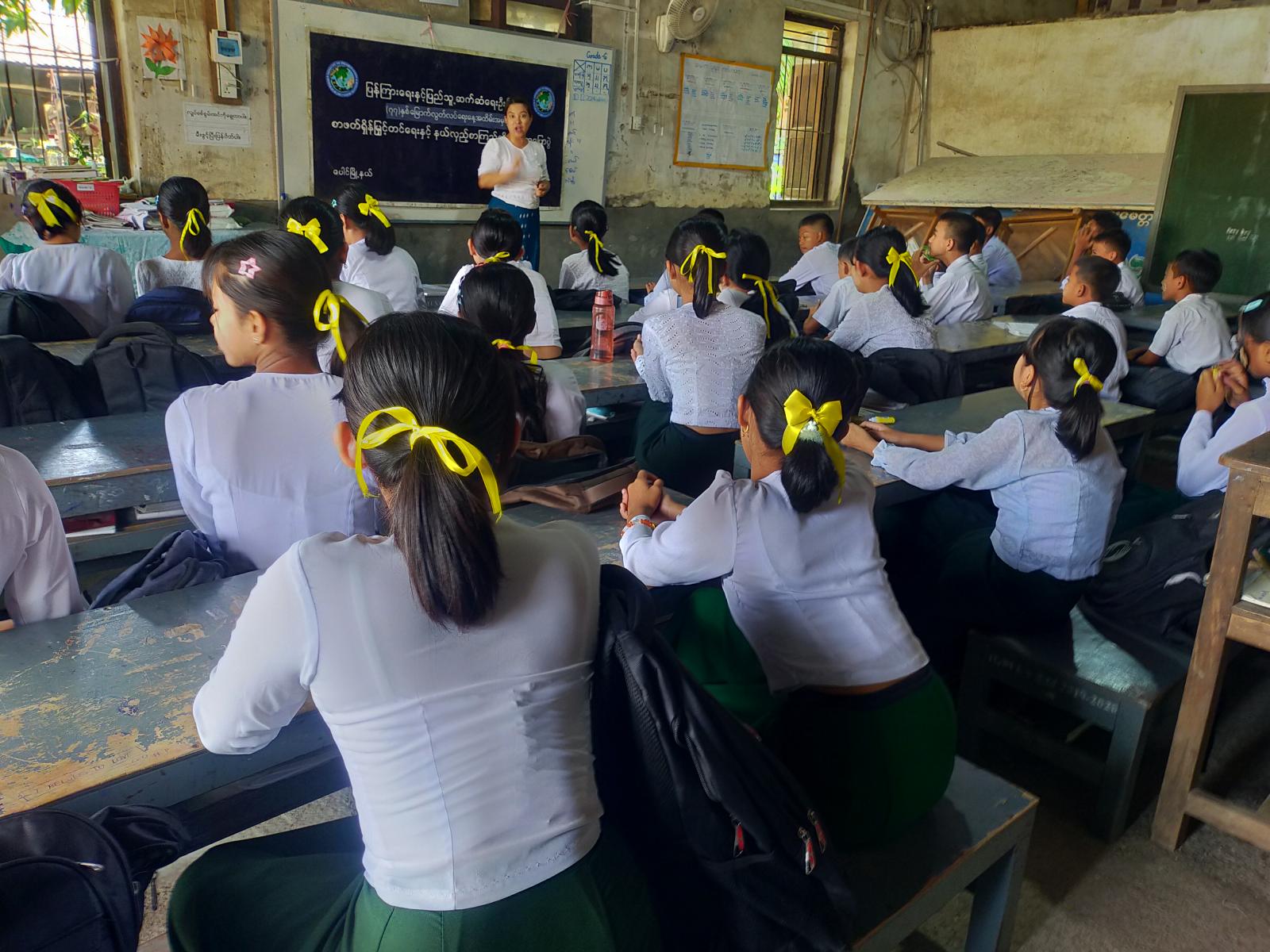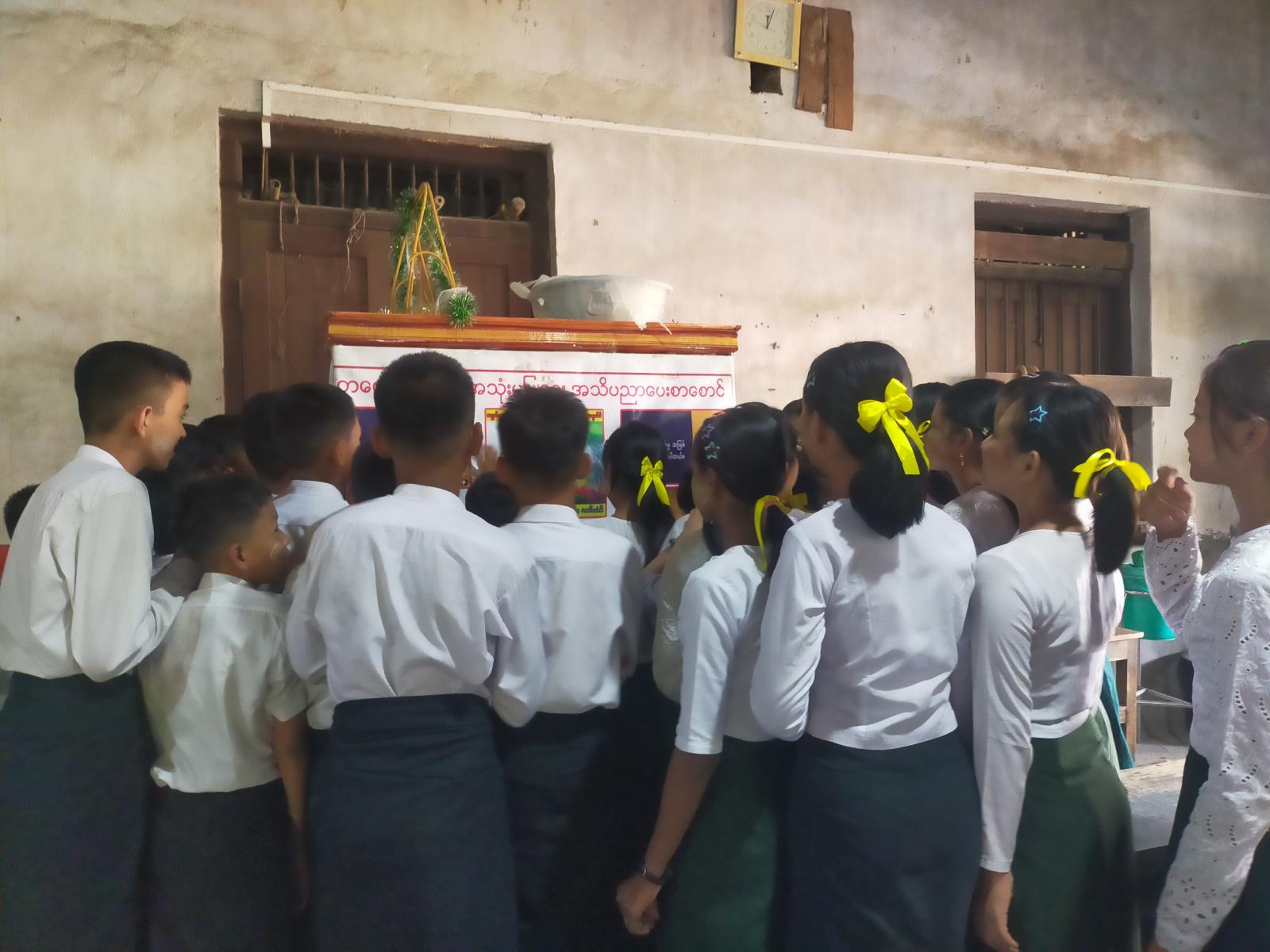 ထို့နောက် ပြန်ကြားရေးနှင့်ပြည်သူ့ဆက်ဆံရေးဦးစီးဌာနမှ ခင်းကျင်းပြသထားသည့် သိမှတ်ဖွယ်ရာနံရံကပ်စာစောင်များ၊ ဓာတ်ပုံများကို တက်ရောက်လာကြသည့် ကျောင်းသား/ကျောင်းသူတို့က စိတ်ပါဝင်စားစွာဖြင့် ကြည့်ရှုလေ့လာမှတ်သားခဲ့ကြကြောင်း သိရသည်။