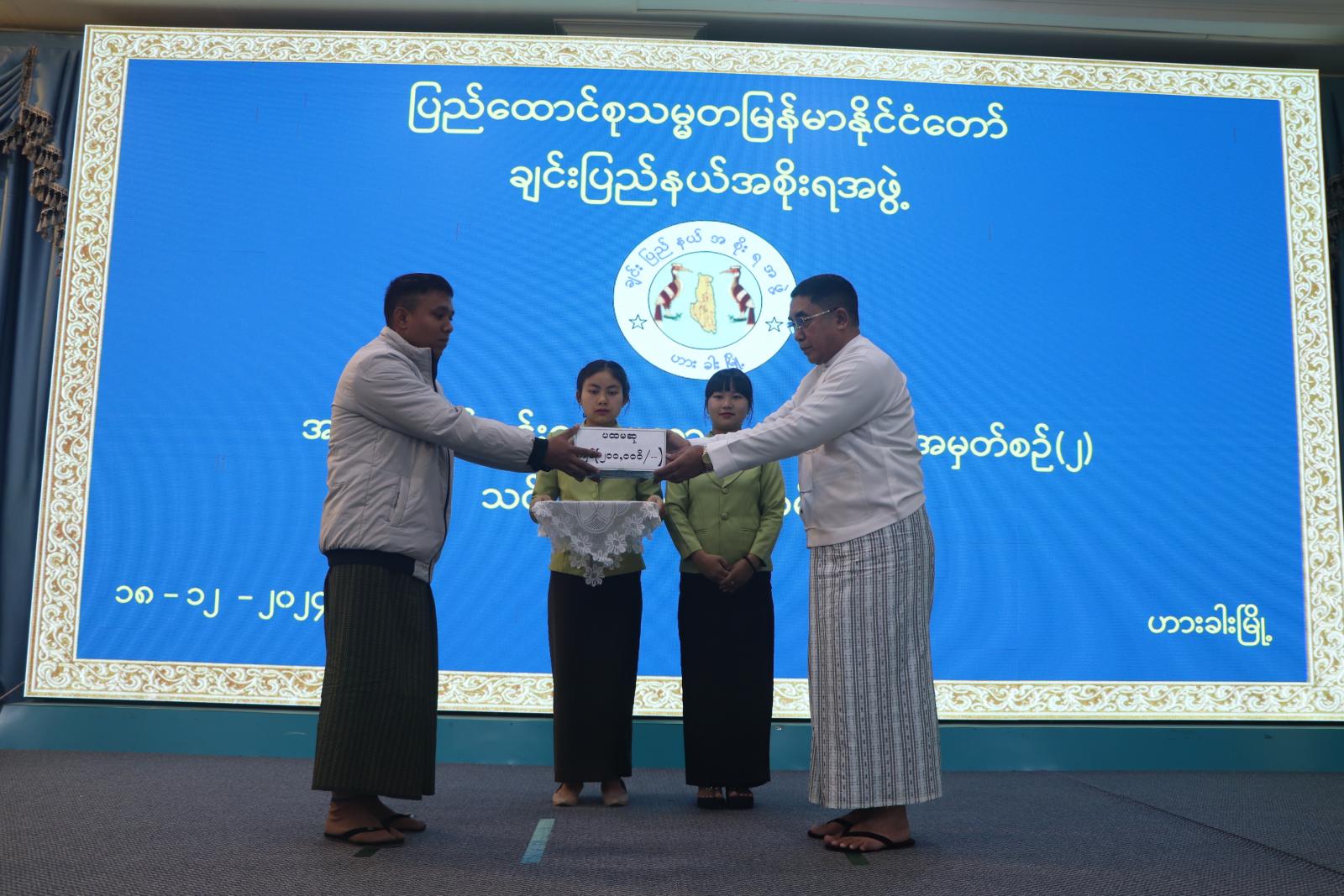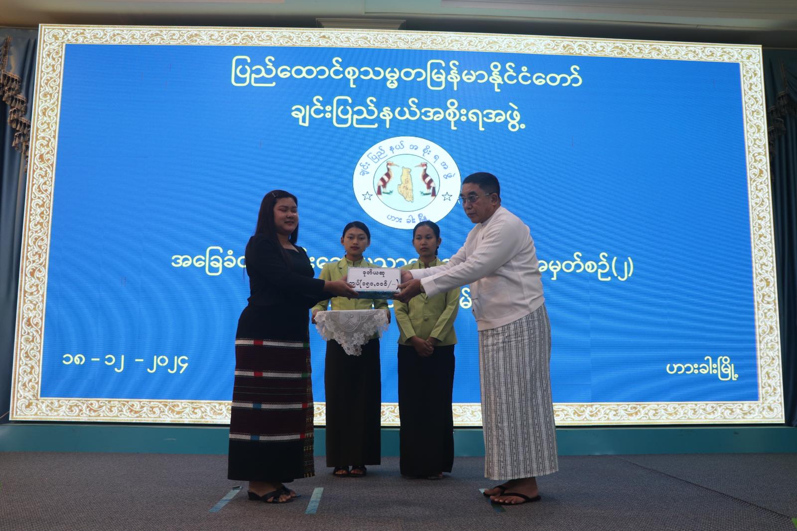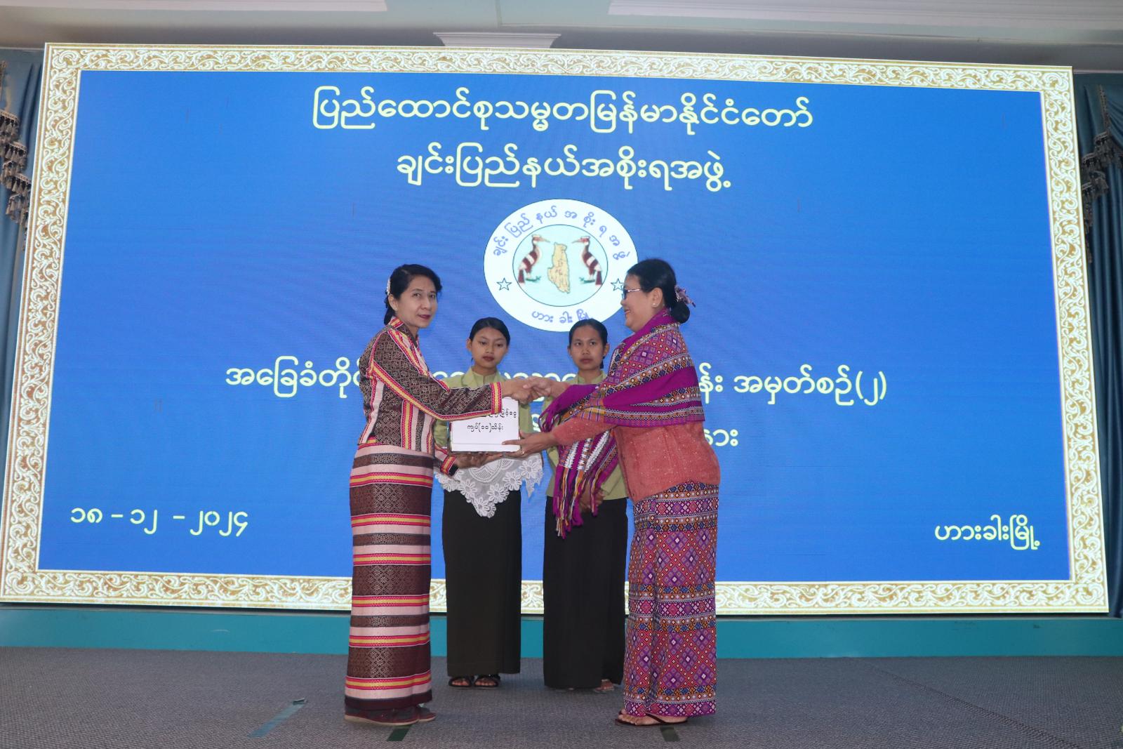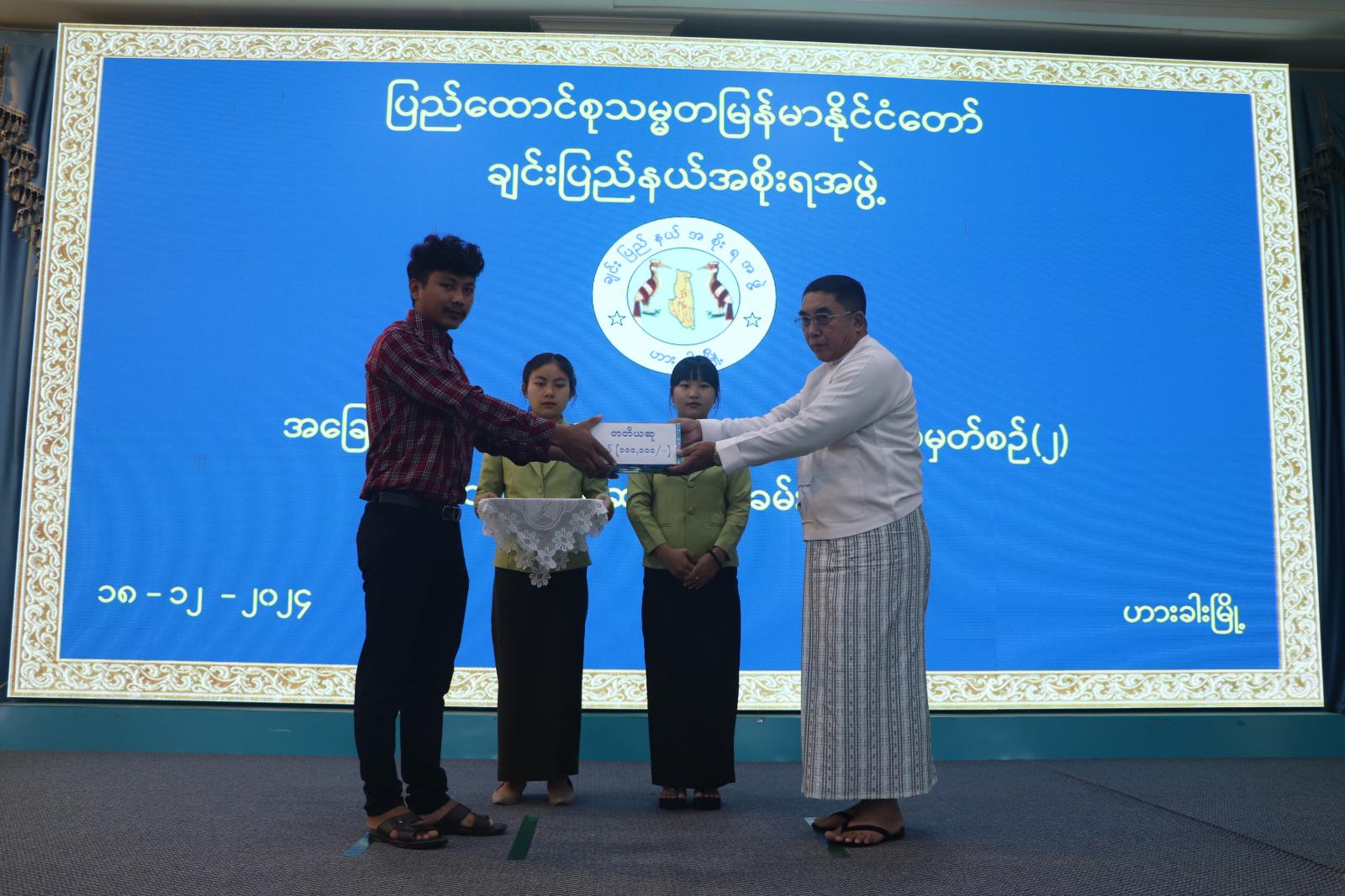 ယင်းနောက် ပြည်နယ်ဝန်ကြီးချုပ်က သင်တန်းတွင် ပထမ၊ ဒုတိယနှင့်တတိယရရှိသည့် ထူးချွန်သင်တန်းသားများကိုလည်းကောင်း၊ ပြည်နယ်ဝန်ကြီးချုပ်၏ဇနီး ဒေါ်ဒိမ်ခန့်လွင်က သင်တန်းနည်းပြ ပြည်နယ်တိုင်းရင်းဆေးပညာဦးစီးဌာန ပြည်နယ်ဦးစီးမှူးအားလည်းကောင်း၊ လုံခြုံရေးနှင့်နယ်စပ်ရေးရာဝန်ကြီး ဗိုလ်မှူးကြီးသိန်းထွန်းအောင်က သင်တန်းသား၊ သင်တန်းသူများကိုယ်စား သင်တန်းသူတစ်ဦးအားလည်းကောင်း ဂုဏ်ပြုဆုနှင့် သင်တန်းဆင်းလက်မှတ်များ ပေးအပ်ချီးမြှင့်ပြီး သင်တန်းသား၊ သင်တန်းသူများကိုယ်စား သင်တန်းသူတစ်ဦးက ကျေးဇူးတင်စကား ပြန်လည်ပြောကြားကာ ပြည်နယ်ဝန်ကြီးချုပ်က အခမ်းအနားတက်ရောက်လာကြသူများအား အားပေးစကားပြောကြားခဲ့ကြောင်း သိရသည်။
