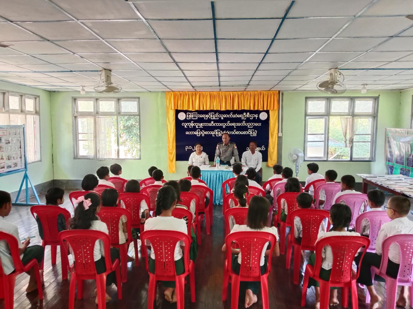အဆိုပါဟောပြောပွဲတွင် ကျောင်းအုပ်ဆရာကြီး ဦးဇော်မင်းမင်းက အမှာစကားပြောကြားပြီး မြို့နယ်ပြန်ကြားရေးနှင့်ပြည်သူ့ဆက်ဆံရေးဦးစီးဌာန ဦးစီးအရာရှိ ဒေါ်တင်တင်ထွေးက လူကုန်ကူးမှုအမျိုးအစားများ၊ ဆိုးကျိုးများနှင့် စာပေဖတ်ရှု့ခြင်းအကျိုးကျေးဇူးများအကြောင်းကို အကျယ်တစ်ဝံ့ရှင်းလင်းပြောကြားသည်။ ထို့နောက် မြို့နယ်မှုခင်းတာဝန်ခံ ရဲအုပ်မင်းသိန်းက လက်ရှိကမ္ဘာပေါ်တွင် ဖြစ်ပေါ်နေသည့် လူကုန်ကူးမှုဆိုင်ရာဖြစ်စဉ်များ၊ ရှောင်ရှားရမည့် အချက်များ၊ လူကုန်ကူးခြင်းသည် လူအခွင့်အရေးချိုးဖောက်မှုနှင့် လူသားချင်းဆိုင်ရာ ဂုဏ်သိက္ခာကို ထိခိုက်စေသည်ဟု သတ်မှတ်ကြောင်း၊ လူကုန်ကူးမှုဆိုတဲ့ အဓိပ္ပါယ် ရှင်းလင်းချက်ကတော့ မိမိအကျိုးစီးပွားတစ်ခုအတွက် လူသားများ၏ကိုယ်ကာယလုပ်အားကို လူသားအချင်းချင်း ခေါင်းပုံဖြတ်အမြတ်ထုတ်ရယူခြင်းနှင့် လူကုန်ကူးခံရသော အလုပ်သမားများအား အတင်းအကျပ်ထိန်းချုပ်ကာ လုပ်အားခမပေးဘဲ အနည်းငယ်မျှသာပေး၍ အလုပ်ခိုင်းစေခြင်း၊ လူကုန်ကူးမှုတားဆီးကာကွယ်ရမည့်အချက်များ၊ ပြစ်မှုပြစ်ဒဏ်များ၊ လူကုန်ကူးမှုဖြစ်ပွားလာပါက ဆက်သွယ်ဆောင်ရွက်ရမည့် လုပ်ငန်းစဉ်များကို အသိပညာပေး ဟောပြောခဲ့ကြောင်း သိရသည်။