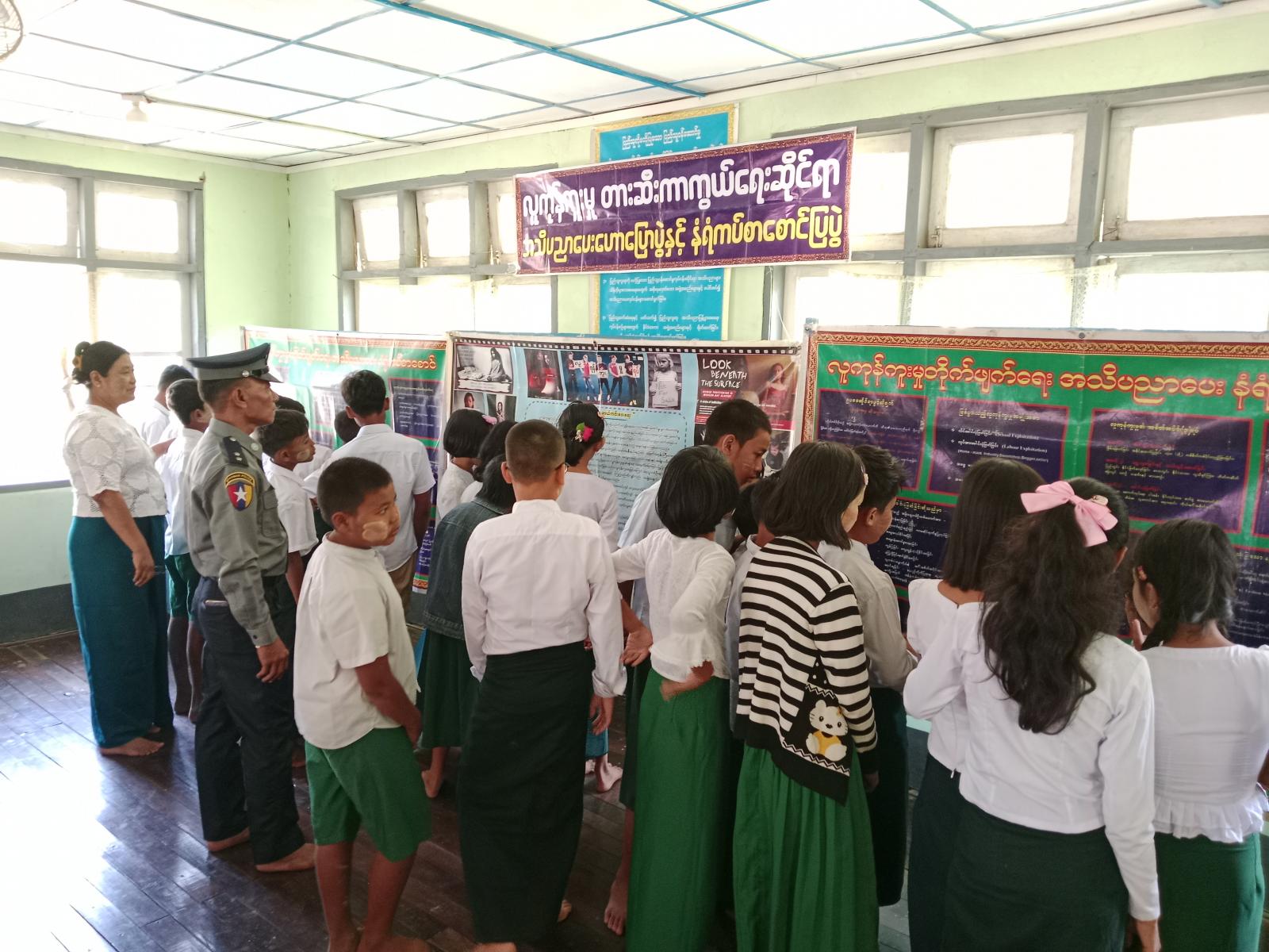 ထို့နောက် ကျောင်းသား/သူများအား လူကုန်ကူးမှုဆိုင်ရာ ဉာဏ်စမ်းပြိုင်ပွဲကို ဝင်ရောက်ယှဉ်ပြိုင်ကြရာ ဖြေဆိုနိုင်သူကျောင်းသားများအား ဆုများပေးအပ်ချီးမြှင့်ခဲ့သည်။ ဆက်လက်၍ ပြန်ကြားရေးနှင့်ပြည်သူ့ဆက်ဆံရေးဦးစီးဌာနမှပြသထားသည့် လူကုန်ကူးမှုတားဆီးကာကွယ်ရေး အသိပညာပေးနံရံကပ်စာစောင်များ၊ သုတ/ရသ စာအုပ်စာစောင်များ ပြသထားရာ ကျောင်းသား/ကျောင်းသူများ၊ ဆရာ၊ ဆရာမကစိတ်ပါဝင်စားစွာ ကြည့်ရှုလေ့လာနေကြကြောင်း သိရသည်။