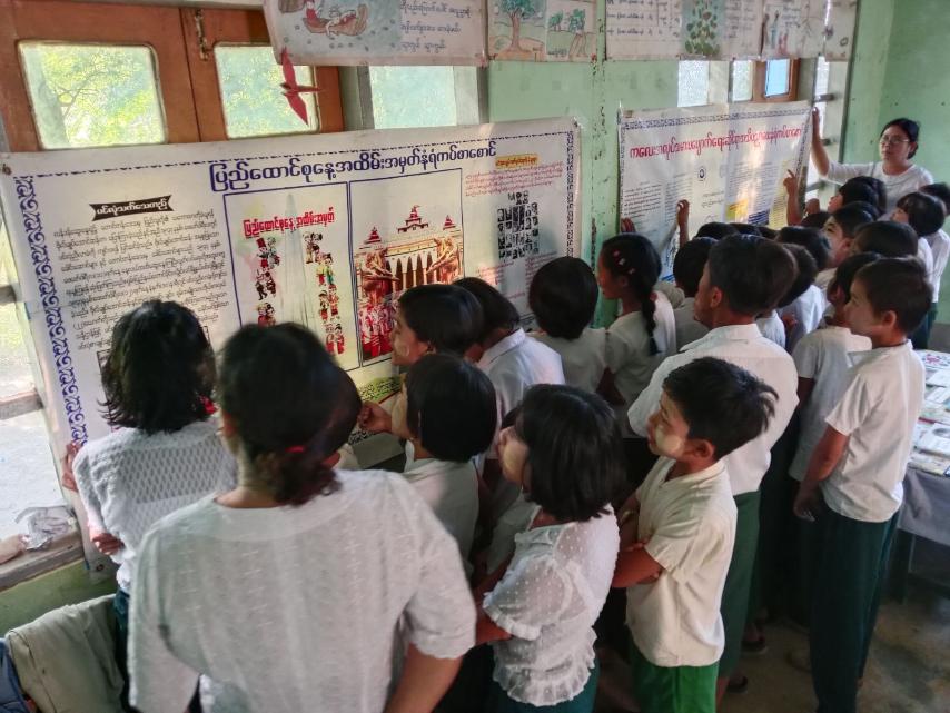 ထိုသို့ နယ်လှည့်ကွင်းဆင်းဆောင်ရွက်ရာတွင် ပြန်ကြားရေးနှင့်ပြည်သူ့ဆက်ဆံရေးဦးစီးဌာနမှ ဦးစီးအရာရှိ ဒေါ်ညွန့်ညွန့်စိန်က စာအုပ်စာပေဖတ်ရှုခြင်းဖြင့် ရရှိလာမည့် အကျိုးကျေးဇူးများကို ကျောင်းသား၊ ကျောင်းသူများအားပြောကြားခဲ့ပြီး ဒုတိယဦးစီးမှူး ဒေါ်မြင့်မြင့်မိုးက ကလေးသူငယ်များ ကိုယ်ကာယ၊ ဥာဏစွမ်းရည်များ ဖွံ့ဖြိုးစေရေး၊ အချင်းချင်းပူးပေါင်း ဆောင်ရွက်တတ်စေရေး၊ တစ်ဦးနှင့်တစ်ဦး ချစ်ခင်ရင်းနှီးမှုများရရှိစေရေး အသိပညာပေးပြောကြားကာ ရုပ်ပုံစာအုပ်ဖြင့် ပုံပြင်ပြောသရုပ်ပြသခြင်း၊ ဘုတ်ပြားပြဇာတ်ပြသခြင်းတို့ကို ဆောင်ရွက်ခဲ့သည်။ ထို့နောက် ကျောင်းသား၊ ကျောင်းသူများအား နံရံကပ်စာစောင်နှင့် စာအုပ်စာစောင်များကို ပြသဖတ်ရှုစေခဲ့ကြောင်း သိရသည်။