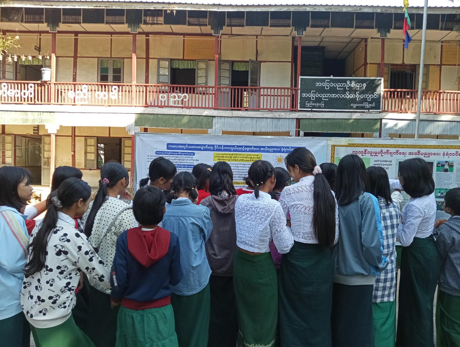 ထို့နောက် ကျောင်းသား၊ ကျောင်းသူများက ပြန်ကြားရေးနှင့်ပြည်သူ့ဆက်ဆံရေးဦးစီးဌာန၏ နယ်လှည့်ရွေ့လျားစာကြည့်တိုက်သုံးဘီးယာဉ်ဖြင့် ခင်းကျင်းပြသထားသော သုတ/ရသစာအုပ် စာစောင်များနှင့် စာဖတ်ရှိန်မြှင့်တင်ရေးနှင့် ကလေးအလုပ်သမားပပျောက်ရေးအသိပညာပေး၊ မူးယစ်ဆေးဝါးအန္တရာယ် သိမှတ်ဖွယ်ရာအကြောင်းများ ဖော်ပြပါဝင်သည့် လူငယ်အသိပညာပေး နံရံကပ်စာစောင်များကို စိတ်ဝင်တစား ဖတ်ရှုလေ့လာကြကြောင်း သိရသည်။