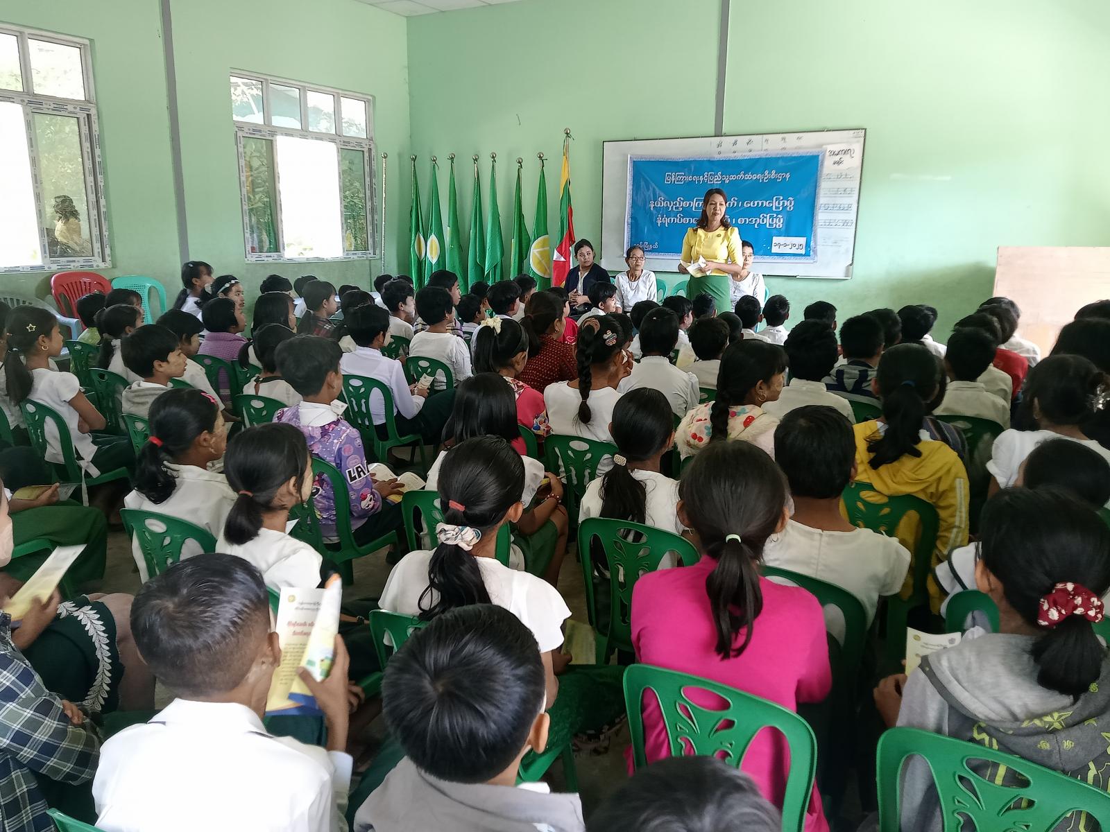ရှေးဦးစွာ ကျောင်းအုပ်ဆရာမကြီး ဒေါ်သီတာဆွေက အဖွင့်အမှာစကားပြောကြားခဲ့ပြီး၊ ပြန်ကြားရေးနှင့်ပြည်သူ့ဆက်ဆံရေးဦးစီးဌာန ဦးစီးအရာရှိ ဒေါ်ခင်နှင်းဝေက ကျောင်းသား၊ ကျောင်းသူများအား ကျောင်းစာအပြင် ပြင်ပဗဟုသုတရရှိမည့် စာပေများကို ဖတ်ရှုလေ့လာစေလိုကြောင်း စာဖတ်ခြင်း၏ အကျိုးကျေးဇူးများအကြောင်းနှင့် ကလေးအလုပ်သမားပပျောက်ရေးဆိုင်ရာ သိမှတ်ဖွယ်ရာများအား အသိပညာပေး ဟောပြောခဲ့သည်။