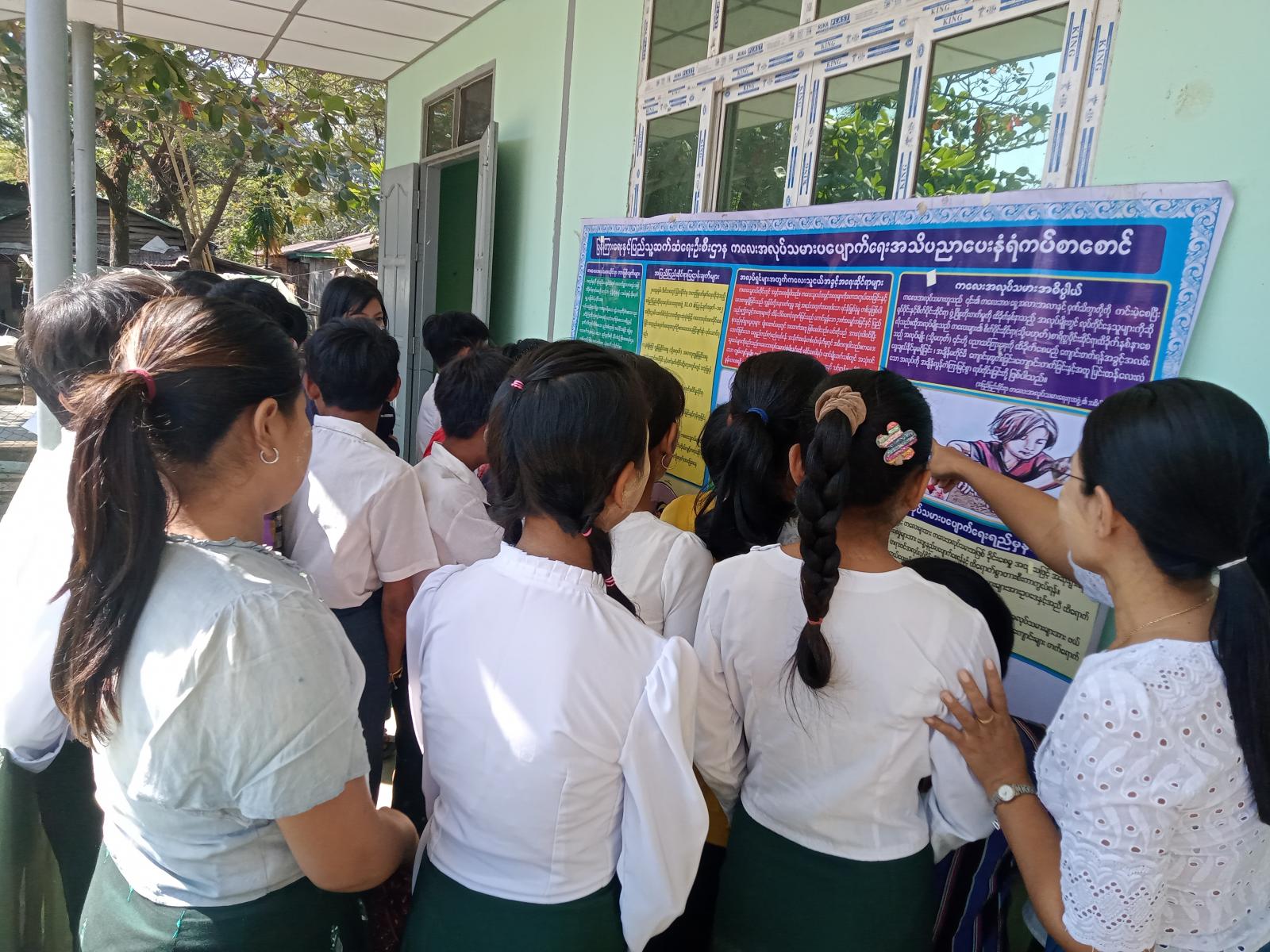 ဆက်လက်၍ ပြန်ကြားရေးနှင့်ပြည်သူ့ဆက်ဆံရေးဦးစီးဌာနမှ ပြသထားသော ကလေးအလုပ်သမားပပျောက်ရေး အသိပညာပေး နံရံကပ်စာစောင်များနှင့် စာအုပ်စာစောင်များကို ကျောင်းသား၊ ကျောင်းသူများက စိတ်ပါဝင်စားစွာ လေ့လာကြည့်ရှုခဲ့ကြ ကြောင်း သိရသည်။