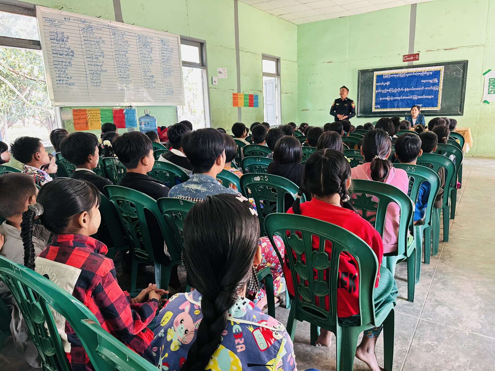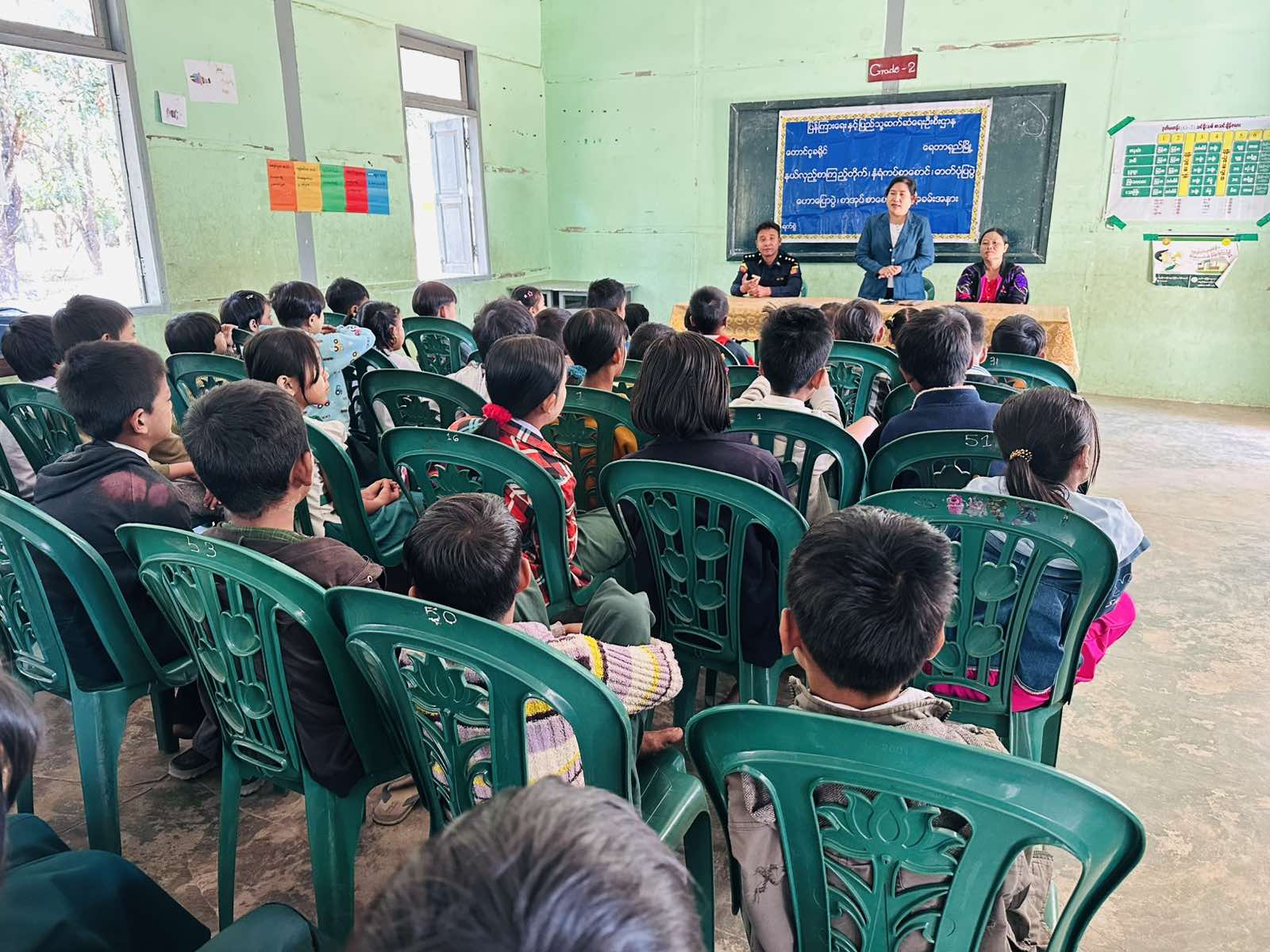 ထို့နောက် ကျောင်းသူ၊ ကျောင်းသားများအား သက်ငယ်မုဒိမ်းမှုကာကွယ်ရေး၊ ကလေး အလုပ်သမားဆိုင်ရာ သိမှတ်ဖွယ်ရာများ၊ လူကုန်ကူးမှုတားဆီးကာကွယ်ရေး၊ မူးယစ်ဆေးဝါးအန္တရာယ် အသိပညာပေးနံရံကပ်စာစောင်များ ပြသခဲ့ကြောင်း သိရသည်။