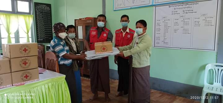 အဆိုပါ ထောက်ပံ့ပေးအပ်ခြင်းကို မြန်မာနိုင်ငံကြက်ခြေနီအသင်းမှ ထောက်ပံ့ပေးသော ထောက်ပံ့ပစ္စည်း များအား မြို့နယ်အထွေထွေအုပ်ချုပ်ရေးဦးစီးဌာန၊ မြို့နယ်အုပ်ချုပ်ရေးမှူး ဦးကျော်ထွန်း၊ ဒု-မြို့နယ်အုပ်ချုပ် ရေးမှူး ဦးကျော်ဇေ၀ဏ္ဏသူ မြို့နယ်ကြက်ခြေနီအသင်းခွဲမှ ကော်မတီ၀င် ဦးမြင့်၀င်းနှင့် မြို့နယ်ကြက်ခြေနီ တပ်ဖွဲ့မှူး ဦးဉာဏ်၀င်းပိုင်တို့မှ သောင်ဘုတ်ရွာနှင့် အလယ်ကျွန်းကျေးရွာတို့တွင် ကမ်းပြိုဘေးကြောင့် ပြောင်းရွေ့ခဲ့ရသောအိမ်ခြေ (၆)လုံး အတွက် အိမ်ထောင်တစ်စုလျှင် Hygiene kit (၁)ခု၊ Tarpaulin (၁)ချပ်စီတို့ကို အိမ်ထောင်စု