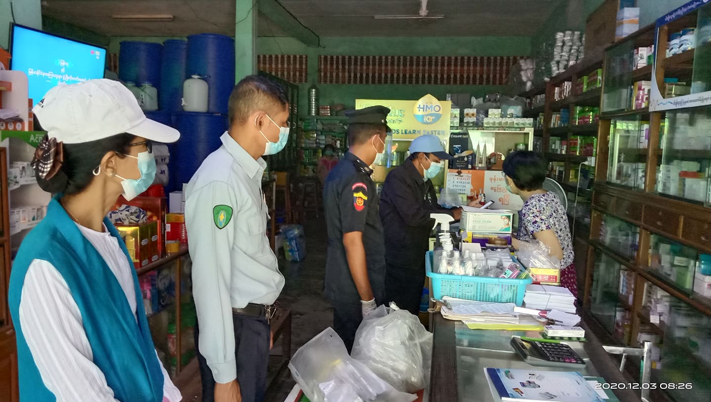 ထိုသို့စစ်ဆေးရာတွင် Amanda Trading Co.,Ltd မှ Amanda Trading and Distribution Facebook Page , Aptamil Product Portfollo , Consumer Pamphlet နှင့် Aptamil Consumer Pamphlet Display at Retail Outlets များ၌ Aptamil Brand , Formulated Milk Powder များ ကြော်ငြာရောင်းချရာတွင် မြန်မာဘာသာဖြင့် အထုပ်ငယ်များတွင် ကုန်အညွှန်းအမှတ်အသားဖော်ပြ မထားခြင်း၊ ယင်းအထုပ်ငယ်များတွင် အမှတ်တံဆိပ်စစ်ဆေးခွင့် တင်ပြမထားခြင်း၊ Aptamil Infant Formula များအား Consumer Pamphlet ဖြင့်ကြော်ငြာရာတွင် Aptamil ၏ အခြားထုတ်ကုန်များ အားထည့်သွင်းကြော်ငြာထားပြီး ''နို့စို့ကလေးနှင့် ကလေးငယ်များအတွက် ဖော်စပ်ထုတ်လုပ် ထားသော အစားအသောက်များ ဈေးကွက်တင်ခြင်းဆိုင်ရာအမိန့်''ပါ ပြဌာန်းချက်များနှင့် ကိုက်ညီမှုမရှိသော ဆေးဝါးနှင့် စားသောက်ကုန် ပစ္စည်းများ ရောင်းချမှု ရှိ/မရှိကို စားသုံးသူရေးရာဦးစီးဌာန မြို့နယ် ဦးစီးမှူး ဦးစိုးမင်းထိုက် ဦးဆောင်၍ စည်ပင်သာယာရေး ကော်မတီ၊ ပြန်ကြားရေးနှင့်ပြည်သူ့ဆက်ဆံရေးဦးစီးဌာန၊ ကျန်းမာရေးဦးစီးဌာန၊ မီးသတ်ဦးစီးဌာန တို့မှတာဝန်ရှိသူများ လိုက်ပါသည့် အဖွဲ့သည် မြို့နယ်အတွင်းရှိ ဆေးဆိုင်နှင့်စတိုးဆိုင်များအား လှည့်လည် စစ်ဆေးခဲ့ကြသည်။