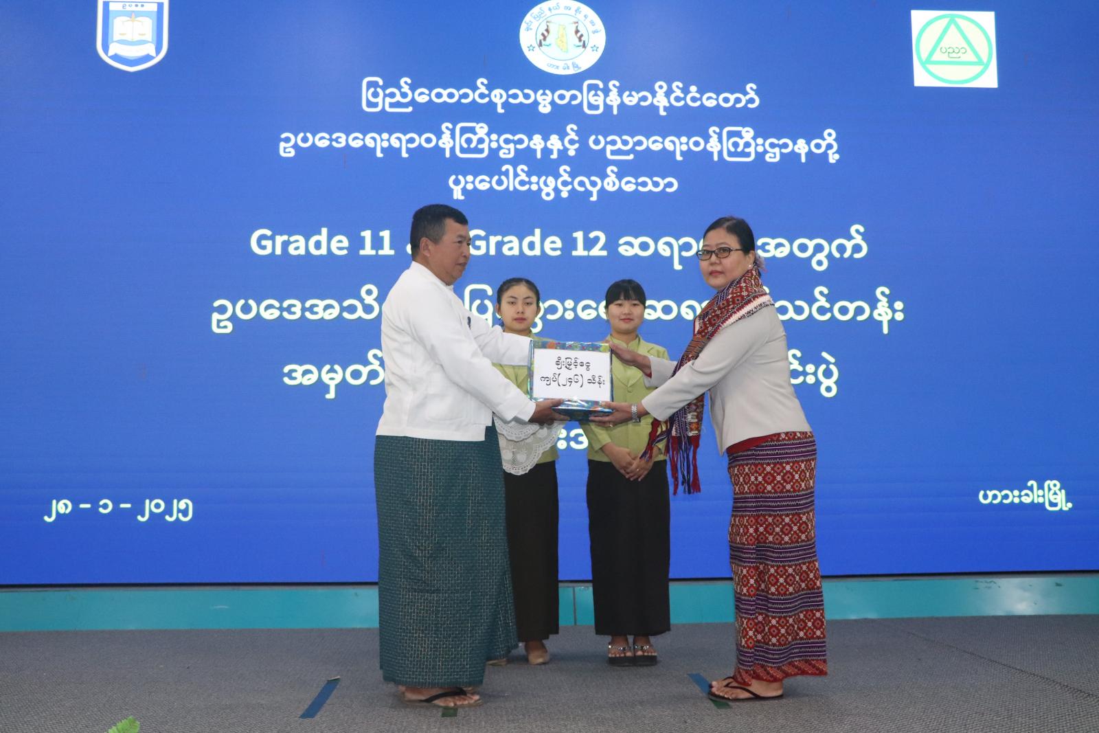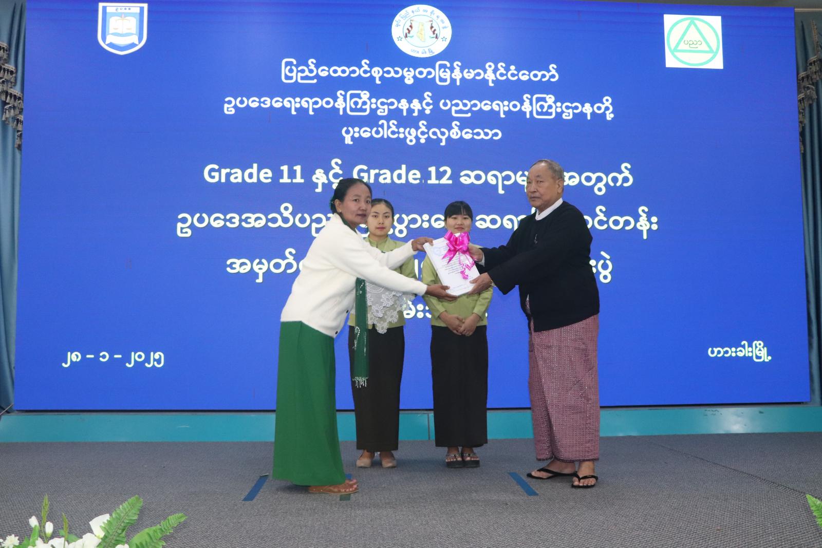 ယင်းနောက် သင်တန်းတွင် ပထမ၊ ဒုတိယ၊ တတိယရရှိသူများအား ပြည်နယ်ဝန်ကြီးချုပ် ဒေါက်တာဝုန်ဆွန်းထန်က လည်းကောင်း၊ သင်တန်းတက်ရောက်ခဲ့ကြသည့် ဆရာ၊ ဆရာမများ အတွက် ချင်းပြည်နယ်အစိုးရအဖွဲ့၏ ဂုဏ်ပြုငွေများကို ပြည်နယ်ဝန်ကြီးချုပ်၏ ဇနီး ဒေါ်ဒိမ်ခန့်လွင် ကလည်းကောင်း ၊ သင်တန်းပြီးမြောက်ကြောင်း အသိအမှတ်ပြုလက်မှတ်များကို ပြည်နယ်ဥပဒေချုပ် ဦးဆွန်ဒုတ်ကျင်ကလည်းကောင်း ပေးအပ်ချီးမြှင့်ကြပြီး သင်တန်းတက်ရောက်နေကြသည့် ဆရာ၊ ဆရာမများကိုယ်စား ဆရာတစ်ဦးက ကျေးဇူးတင်စကားပြောကြား၍ စုပေါင်းမှတ်တမ်းတင် ဓာတ်ပုံရိုက်ကူးကြ၍ ပြည်နယ်ဝန်ကြီးချုပ်က သင်တန်းတက်ရောက်ကြသည့် ဆရာ၊ ဆရာမများ အား အားပေးစကားပြောကြားသည်။