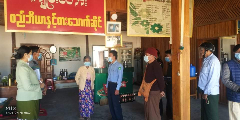 ရှမ်းပြည်နယ်(တောင်ပိုင်း) လင်းခေးခရိုင်၊ ကျိုင်းတောင်းမြို့တွင် ကိုဗစ်-၁၉ ရောဂါ ကူးစက်ပြန့်ပွားမှုမရှိစေရေးအတွက် မြို့နယ်အတွင်းရှိ စားသောက်ဆိုင်များနှင့် လက်ဖက်ရည်ဆိုင်များအား ဆိုင်ထိုင်စနစ်ဖြင့် ရောင်းချမှု မရှိစေရေးနှင့် မီးဘေးအန္တရာယ်တားဆီးကာကွယ်ရေးလုပ်ငန်းများ လိုက်လံစစ်ဆေး အသိပညာပေးခြင်းကို ယနေ့နံနက် ၉နာရီခွဲခန့်က ဆောင်ရွက်ခဲ့ကြောင်း သိရသည်။