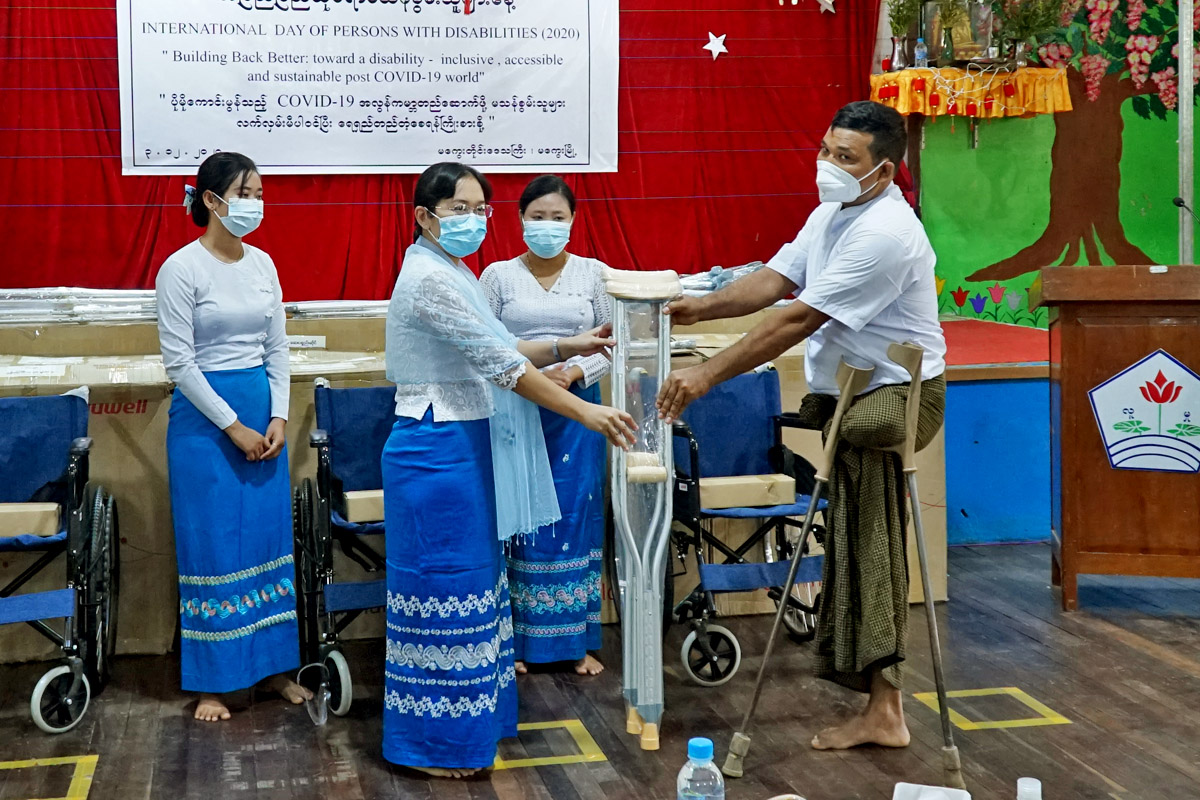 အခမ်းအနားတွင် တိုင်းဒေသကြီးအစိုးရအဖွဲ့ လူမှုရေးဝန်ကြီး ဒေါက်တာ ခင်မောင်အေးက အပြည်ပြည်ဆိုင်ရာမသန်စွမ်းသူများနေ့ကို ၁၉၉၄ ခုနှစ်က စတင်ပြီး နှစ်စဉ် ဒီဇင်ဘာလ (၃)ရက်နေ့ မှာ အစဉ်အလာမပျက် ဂုဏ်ပြုကျင်းပခဲ့တာဖြစ်ပြီး အခု ၂၀၂၀ ပြည့်နှစ်မှာ(၂၇)ကြိမ် ပြည့်မြောက်ခဲ့ပြီ ဖြစ်ကြောင်း၊မသန်စွမ်းသူတွေရဲ့ ဘဝမှာခံစားကြုံတွေ့ရတဲ့ အခက်အခဲ အတားအဆီးများဟာ သူတို့ရဲ့ မပြည့်စုံမှုကြောင့်မဟုတ်ဘဲ သူတို့ရဲ့ပတ်ဝန်းကျင်မှာ ရင်ဆိုင်ကြုံတွေ့နေရတဲ့ အတားအဆီးတွေ ကြောင့်သာဖြစ်ကြောင်း၊ ဒါ့ကြောင့် မသန်စွမ်းသူတွေနဲ့ ပတ်သက်တဲ့ အရေးကိစ္စဟာ လူမှုရေးလုပ်ငန်း ပရဟိတလုပ်ငန်းတွေနဲ့သာ သက်ဆိုင်တဲ့ကိစ္စ မဟုတ်တော့ဘဲ လူ့အသိုင်းအဝန်း လူ့အဖွဲ့အစည်း တစ်ရပ်လုံးနဲ့ သက်ဆိုင်တဲ့ လူမှုဖွံ့ဖြိုးရေး ကိစ္စတစ်ရပ်အဖြစ် ဆောင်ရွက်သွားရမှာ ဖြစ်ကြောင်း၊ ကိုဗစ်-၁၉ ရောဂါကူးစက်ပြန့်ပွားမှုသည် တစ်ကမ္ဘာလုံးအတိုင်းအတာအဖြစ် ကူးစက်ပြန့်နှံသော ကပ်ရောဂါ အဖြစ် ကမ္ဘာ့ကျန်းမာရေးအဖွဲ့က(၁၂-၃-၂၀၂၀)ရက်နေ့က ထုတ်ပြန်ကြေညာခဲ့ပါတယ်၊ ဒါကြောင့် မြန်မာနိုငံကလည်း ရေရှည်မှာ နိုင်ငံသားများအပေါ် ရိုက်ခတ်လာတဲ့ အကျိုးဆက်တွေကို လျော့နည်း စေရေးနဲ့ ကိုဗစ်-၁၉ ရဲ့ အကျိုးဆက်တွေကြောင့် ကဏ္ဍပေါင်းစုံမျာ ထိခိုက်နစ်နာမှုတွေ ကြုံတွေ့ရမှု အပေါ် ဆောင်ရွက်သင့်သည်များ ဆောင်ရွက်နိုင်ရေးအတွက် နိုင်ငံတော်၏ အတိုင်ပင်ခံပုဂ္ဂိုလ် ဦးဆောင် ကာ ဆောင်ရွက်လျက်ရှိကြောင်း၊ ၂၀၂၀ ပြည့် ယခုနှစ် ဆောင်ပုဒ်ဖြစ်တဲ့ Building Back Better: toward a disability- inclusive, accessible and sustainable post COVID-19 World ဖြစ်ပြီး ပိုမိုကောင်းမွန်သည့် ကိုဗစ်-၁၉ အလွန် ကမ္ဘာတည်ဆောက်ဖို့ မသန်စွမ်းသူများ လက်လှမ်း မီပါဝင်ပြီး ရေရှည်တည်တံ့စေရန် ကြိုးစားစို့ ဆောင်ပုဒ်နှင့်အညီ မသန်စွမ်းသူများနှင့်အတူ ကိုဗစ်-၁၉ အလွန် ရေရှည်တည်တံ့သော လူသားအားလုံးအတွက် လှပတဲ့ ကမ္ဘာမြေဆီသို့ မသန်စွမ်းသူများနဲ့အတူ လက်တွဲ ညီညီလျှောက်လှမ်းကြပါစို့ဟု တိုက်တွန်းပြောကြားသည်။