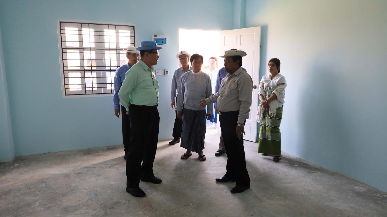 ထိုနောက် ပြည်နယ်ဝန်ကြီးချုပ်၊ ပြည်နယ်တရားလွှတ်တော်တရားသူကြီးချုပ်ဦးညွန့်လင်း၊ ပြည်နယ်အစိုးရ အဖွဲ့ဝင်များနှင့်တာဝန်ရှိသူများက (၃) ခန်းတွဲ (၅) ထပ် ပြည်သူ့အငှားအိမ်ရာအား ဖဲကြိုးဖြတ် ဖွင့်လှစ်ပေးကြပြီး ဖွင့်ပွဲတွင် ပါဝင်အားဖြည့်ကူညီပေးကြသော ယဉ်ကျေးမှုအဖွဲ့များ၊ ဘင်ခရာ၊ ပန်းပွားအဖွဲ့များအား ဂုဏ်ပြုဆုများ ပေးအပ်ချီးမြှင့်ကာ စုပေါင်းမှတ်တမ်းဓာတ်ပုံများရိုက်ကူး၍ အဆောက်အဦ၊ ကွန်ကရစ်လမ်း၊ ထရန်စဖော်မာ၊ ပြင်ပမီးလိုင်းနှင့် ရေရရှိရေးဆောင်ရွက်ထားရှိမှုများကို လှည့်လည်ကြည့်ရှုစစ်ဆေးကြသည်။