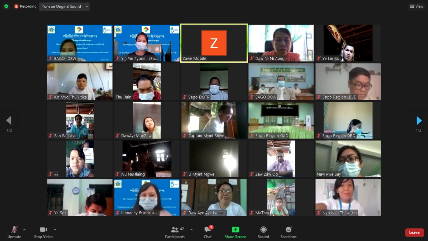 ၂၀၂၀ ပြည့်နှစ်၊ အပြည်ပြည်ဆိုင်ရာမသန်စွမ်းသူများနေ့ အထိမ်းအမှတ် အွန်းလိုင်း အခမ်းအနားကို ဒီဇင်ဘာ ၃ ရက် နံနက် ၉ နာရီက ကျင်းပပြုလုပ်ခဲ့ပြီး အခမ်းအနားသို့ မသန်စွမ်းသူများ၏ အခွင့်အရေးများ ဆိုင်ရာ ပဲခူးတိုင်းဒေသကြီးကော်မတီ ဒုတိယဥက္ကဋ္ဌ၊ ပဲခူးတိုင်းဒေသကြီးအစိုးရ အဖွဲ့ကရင်တိုင်းရင်းသား လူမျိုးရေးရာဝန်ကြီး နော်ပွယ်စေးနှင့် တိုင်းဒေသကြီးမသန်စွမ်းသူများ၏ အခွင့်အရေးများဆိုင်ရာကော် မတီဝင်များ၊ Humanity and Inclusionအဖွဲ့မှတာဝန်ရှိသူများ၊ တိုင်းဒေသကြီးမသန်စွမ်းသူများအသင်းမှ ကိုယ်စားလှယ်များ စုစုပေါင်း (၅၀)ကျော် တက်ရောက်ခဲ့ကြောင်းသိရသည်။