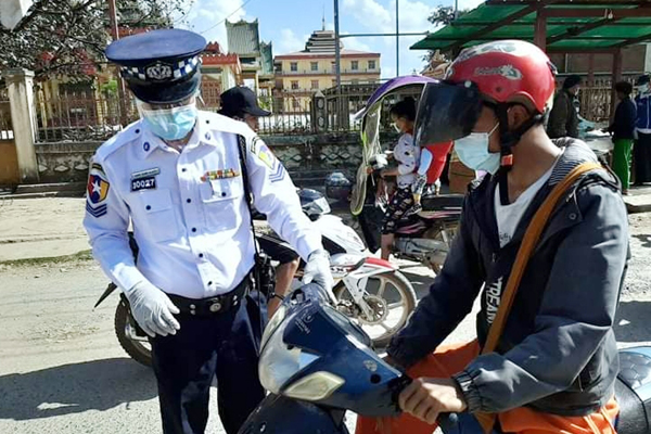 ရှမ်းပြည်နယ်(မြောက်ပိုင်း) တန့်ယန်းမြို့နယ်တွင် ကိုဗစ်-၁၉ ရောဂါ ကာကွယ်ရေးကာလအတွင်း မော်တော်ယာဉ်နှင့် လမ်းအသုံးပြုသူများ ကျန်းမာရေး ညွှန်ကြားချက်များနှင့်အညီ လိုက်နာဆောင်ရွက်ရန် မြန်မာနိုင်ငံရဲတပ်ဖွဲ့ ယာဉ်ထိန်း ရဲတပ်ဖွဲ့စိတ်မှ ယာဉ်စည်းကမ်း၊ လမ်းစည်းကမ်းနှင့်အညီလိုက်နာနိုင်ရေးအား ပြည်သူများ လိုက်နာနိုင်ရေးအတွက် အသိပညာပေးလျက်ရှိသည်။