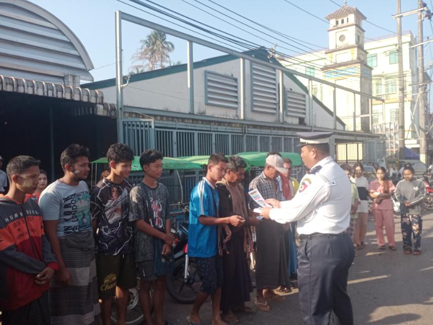 ယာဉ်အန္တရာယ်ကင်းရှင်းစေရေးနှင့် ယာဉ်တိုက်မှုများ လျော့နည်းပပျောက်စေရေးအတွက် ယာဉ်စည်းကမ်း၊ လမ်းစည်းကမ်းဆိုင်ရာ ပညာပေးစစ်ဆေးခြင်းနှင့် လက်ကမ်းစာစောင်များ ဖြန့်ဝေခြင်းကို ယနေ့နံနက်ပိုင်း ၈ နာရီ ၃၀ မိနစ် အချိန်က ကရင်ပြည်နယ်၊ ကော့ကရိတ်မြို့၊ အမှတ် (၃) ရပ်ကွက်ရှိ မြို့မဈေးကြီးရှေ့တွင် ပြုလုပ်ဆောင်ရွက်ခဲ့ကြသည်။