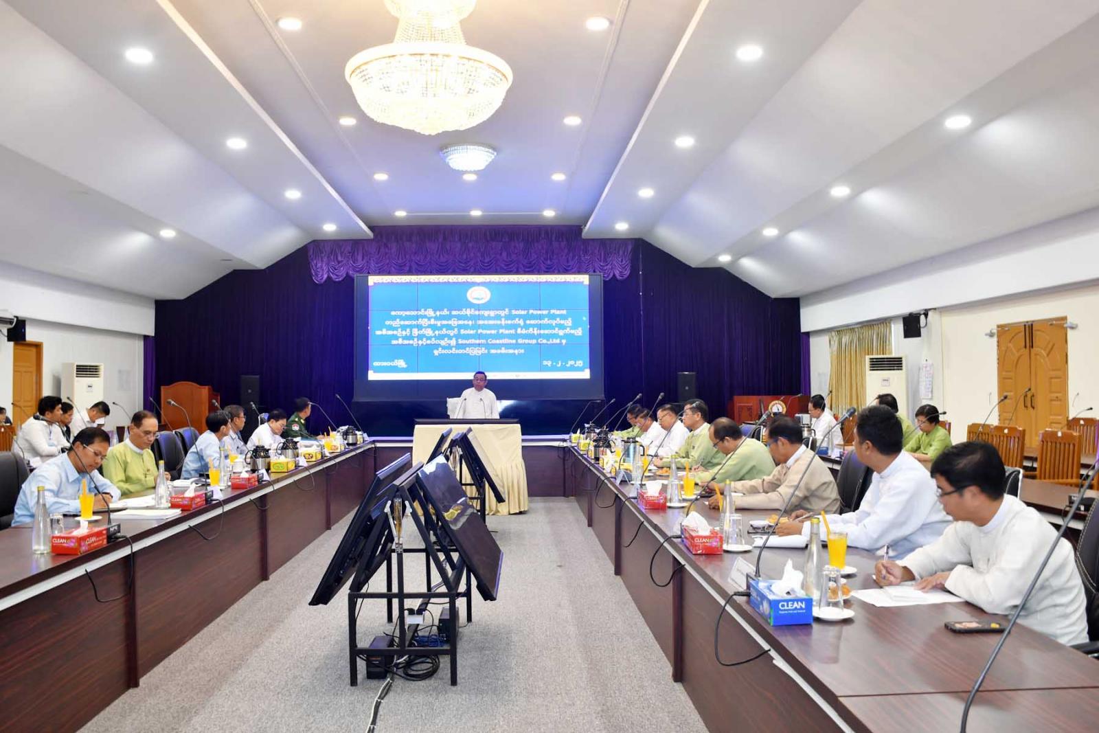 ကော့သောင်းမြို့နယ်၊ ဆယ်မိုင်ကျေးရွာတွင် Solar Power Plant တည်ဆောက်ပြီးစီးမှုအခြေအနေ၊ အအေးခန်းစက်ရုံ ဆောက်လုပ်မည့်အစီအစဉ်နှင့် မြိတ်မြို့နယ်တွင် Solar Power Plant စီမံကိန်းဆောင်ရွက်မည့်လုပ်ငန်းများနှင့်စပ်လျဉ်း၍ Southern Coastline Group Co.,Ltd က ရှင်းလင်းတင်ပြခြင်းအခမ်းအနားကို ယမန်နေ့မွန်းလွဲ ၁ နာရီကထားဝယ်မြို့၊ တနင်္သာရီတိုင်းဒေသကြီး အစိုးရအဖွဲ့ရုံး၊ အစည်း အဝေးခန်းမ၌ ကျင်းပခဲ့သည်။