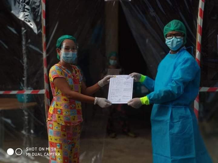 ထိုသို့ဆေးရုံဆင်းခွင့်ရရှိသူများအား ကျောက်တန်းမြို့နယ် ပြည်သူ့ကျန်းမာရေးဦးစီးဌာနမှူး ဒေါက်တာ မို့မို့ခိုင် က ကျန်းမာရေးဆိုင်ရာ အသိပညာများနှင့် မိမိတို့နေအိမ်သို့ရောက်သောအခါတွင်လည်း နေအိမ်တွင် Stay at Home (၇) ရက်ကြာနေထိုင်ရေး စည်းကမ်းချက်များဆွေးနွေးမှာကြားပြီး ဆေးရုံဆင်းလက်မှတ်များပေးအပ်ခဲ့ကြောင်း သိရ သည်။
