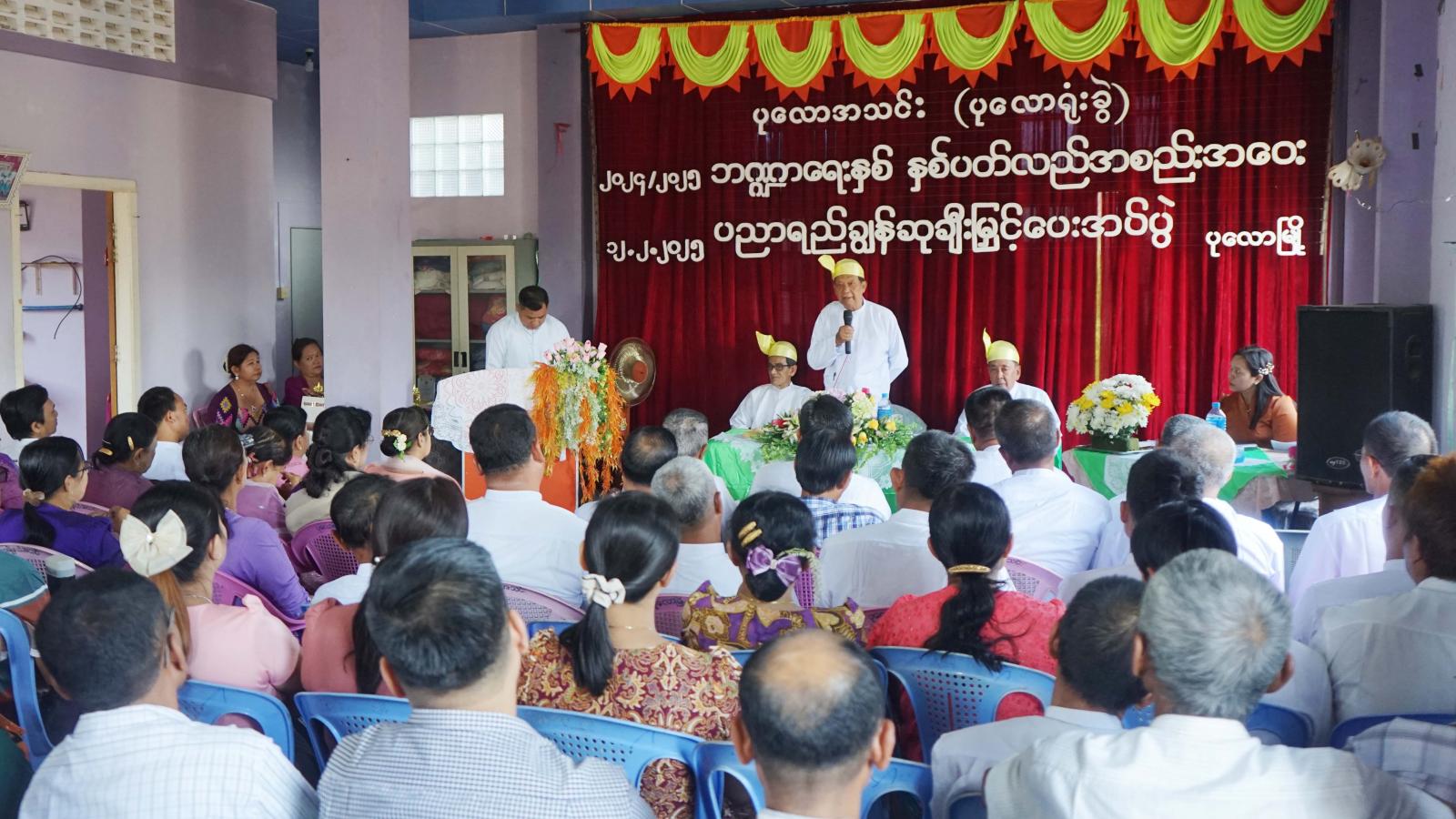 နှစ်ပတ်လည်အစည်းအဝေးတွင် ပုလောမြို့၊ ပုလောအသင်း (ပုလောခွဲရုံး) နာယကဦးတင်ကြွယ်က ပုလောအသင်းကို ၁၉၅၆ ခုနှစ် ဇွန်လ ၃ ရက်နေ့က ရန်ကုန်မြို့တွင်အဝေးရောက် ပုလောသူ၊ ပုလောသားများဖြင့် စတင်တည်ထောင်ခဲ့ပြီး ၆၉ နှစ်ရှိပြီကြောင်း၊ အသင်းဝင်ဦးရေ ၇၈၃၀ ဦးရှိ၍ အသင်းမှရရှိသည့် ရန်ပုံငွေဖြင့် အသင်းသူ/အသင်းသားများ၏ ပညာရေး၊ ကျန်းမာရေး၊ လူမှုရေး စသည့် ကိစ္စအရပ်ရပ်ကို ပံ့ပိုးကူညီပေးလျက်ရှိကြောင်း၊ အလားတူ ပညာသင်နှစ်အလိုက် ထူးချွန် ကျောင်းသား၊ ကျောင်းသူများကို ပညာရည်ချွန်ဆုများ ချီးမြှင့်ပေးလျက်ရှိကြောင်းနှင့် အသင်းသား/အသင်းသားများအနေဖြင့် အသင်း၏ ဆောင်ပုဒ်ဖြစ်သည့် စည်းလုံးခြင်းဖြင့် အောင်စေအံ့ဆိုသည့်အတိုင်း စည်းလုံးညီညွှတ်စွာဖြင့် ဆောင်ရွက်သွားရန် ပြောကြားခဲ့သည်။