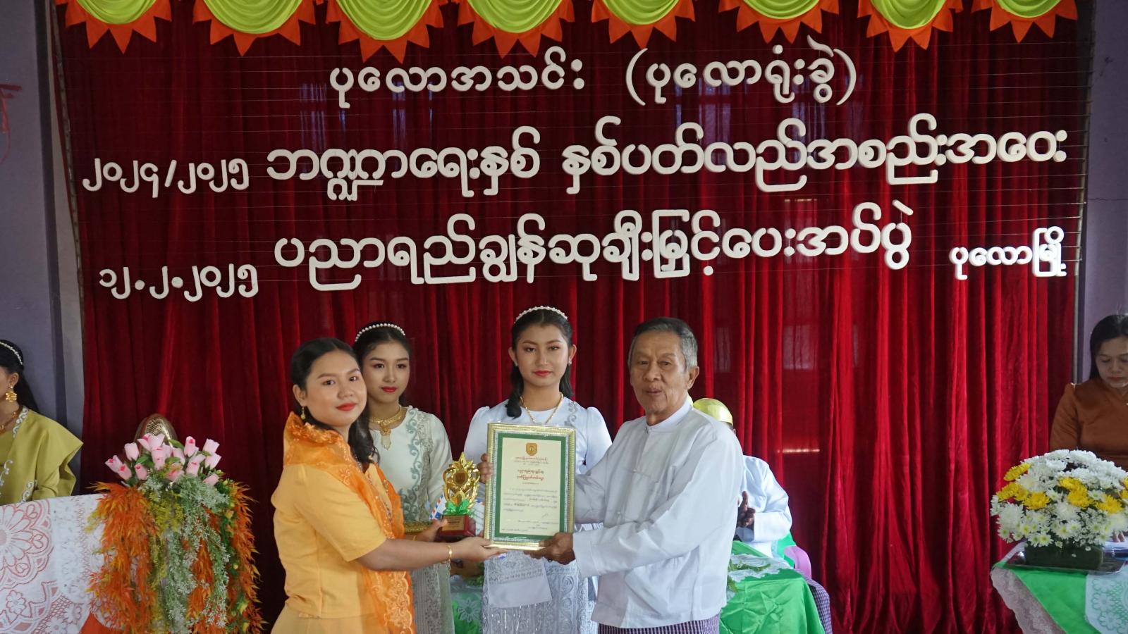 ဆက်လက်၍ ၂၀၂၃-၂၀၂၄ ပညာသင်နှစ်အတွက် တက္ကသိုလ်ဝင်တန်းတွင် ဂုဏ်ထူးများဖြင့်ထူးချွန်စွာ အောင်မြင်ခဲ့သည့် အသင်းသူ/အသင်းသားများ၏ သားသမီး (၂၀) ဦးနှင့် လူရည်ချွန် (၃)ကို ပုလောအသင်းဥက္ကဋ္ဌ ဦးပြည်စိုးနှင့် တာဝန်ရှိသူများက ဆုများအသီးသီးချီးမြှင့်ခဲ့ကြောင်း သိရသည်။
