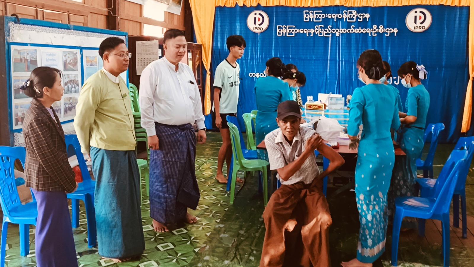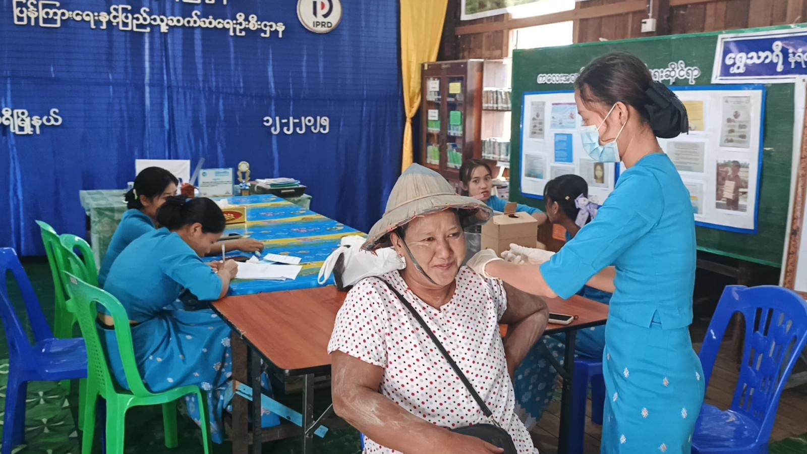 ထိုသို့ Pfizer ကိုဗစ်-၁၉ရောဂါကာကွယ်ဆေးထိုးနှံပေးရာတွင် ပြည်သူ့ကျန်းမာရေးဦးစီးဌာနမှ ကျန်းမာရေးမှူး-၄ ဒေါ်နှင်းထက်စိုးနှင့်ဝန်ထမ်းများက ကာကွယ်ဆေးထိုးရန်လာသူများကို ကာကွယ်ဆေး ထိုးစဉ် ဓါတ်မတည့်မှု ရှိ/မရှိ၊ အမည်နှင့်ကိုယ်ရေးအချက်အလက်များကို မေးမြန်းစာရင်းရေးသွင်းပြီး မှ Pfizer ကိုဗစ်-၁၉ရောဂါ ကာကွယ်ဆေးကို ထပ်ဆောင်းထိုးနှံပေးကြသည်။